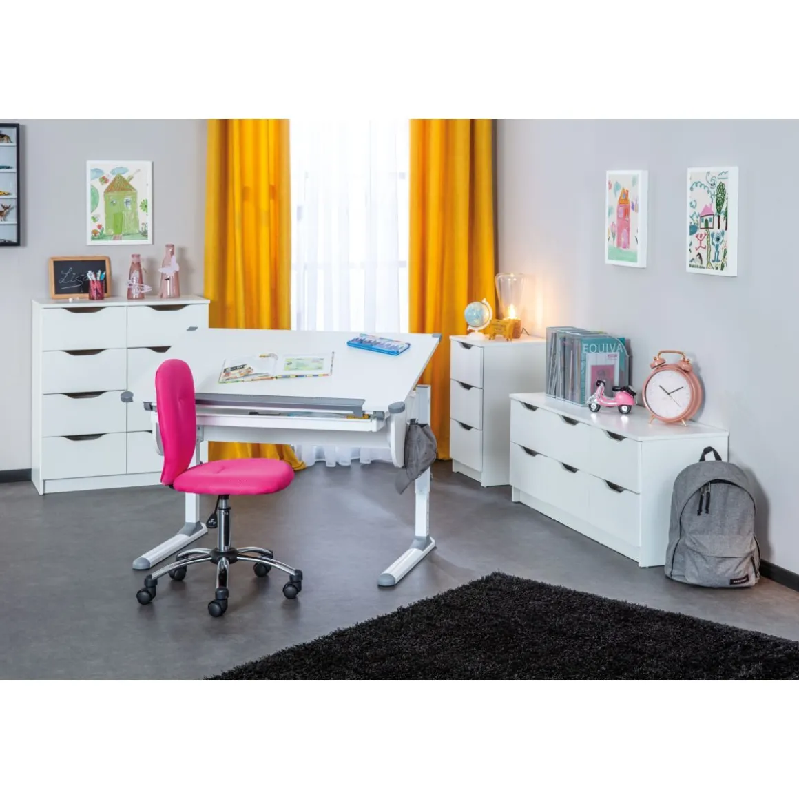 Le meuble de rangement Falone est parfait pour compléter votre bureau ou autre élément associé. Muni de trois tiroirs coulissants avec encoches pour vous faciliter leurs ouvertures, cette commode en mélaminé blanc est simple et efficace. Idéal pour apporter un espace de stockage et y ranger vos dossiers ou fournitures scolaires.