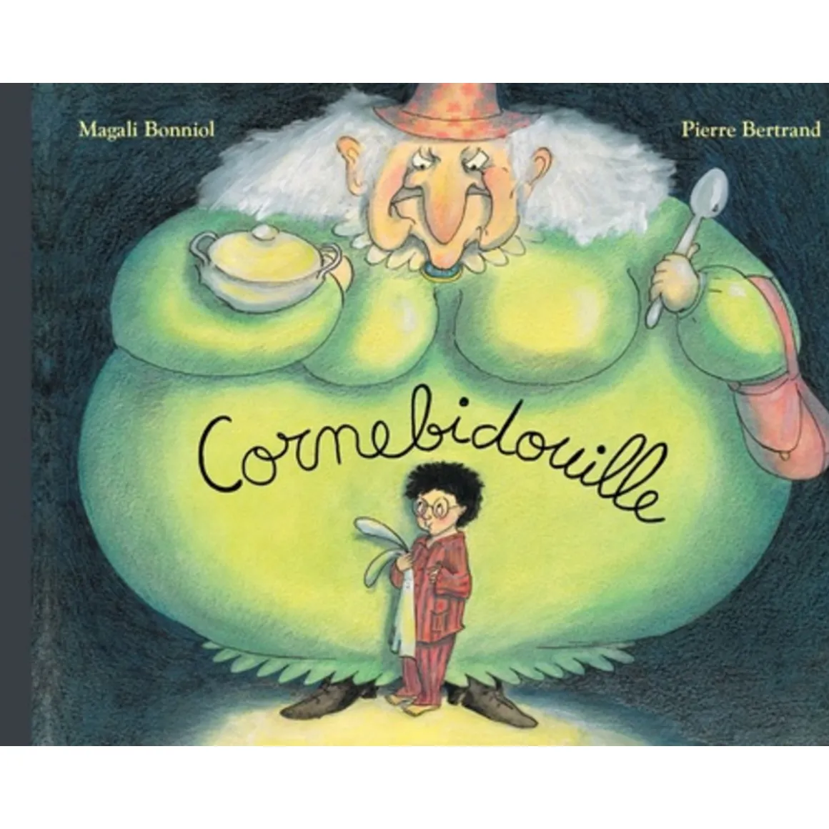 Quand il était petit, Pierre ne voulait pas manger sa soupe. « Tu sais ce qui arrive aux petits garçons qui ne veulent pas manger leur soupe? » lui disait son père, « Eh bien, à minuit, la sorcière Cornebidouille vient les voir dans leur chambre, et elle leur fait tellement peur que le lendemain, non seulement ils mangent leur soupe, mais ils avalent la soupière avec. » Pierre s’en fichait. Il ne croyait pas aux sorcières. A partir de 5 ans.