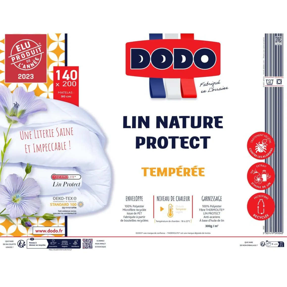 Confectionnée avec un Tissu 100% Polyester Microfibre – tout Doux – Issu de PET – Fabriqué à partir de Bouteilles Recyclées, notre Planète nous dit Merci ! Garnie de Fibre 100% Polyester THERMOLITE® LIN PROTECT*, Creuse et Siliconée, nouvelle Génération, elle est Traitée Anti-Acariens, à Base d’Huile de Lin (Le Lin, dont la France est le 1er Producteur Mondial), pour une Literie Confortable, Saine et Impeccable ! *Exclusivité DODO® en Partenariat avec son Fournisseur de Fibres Historique, la Société ADVANSA. Tempérée, pour un Usage tout au long de l’Année. Fabrication Française, Qualité Garantie.