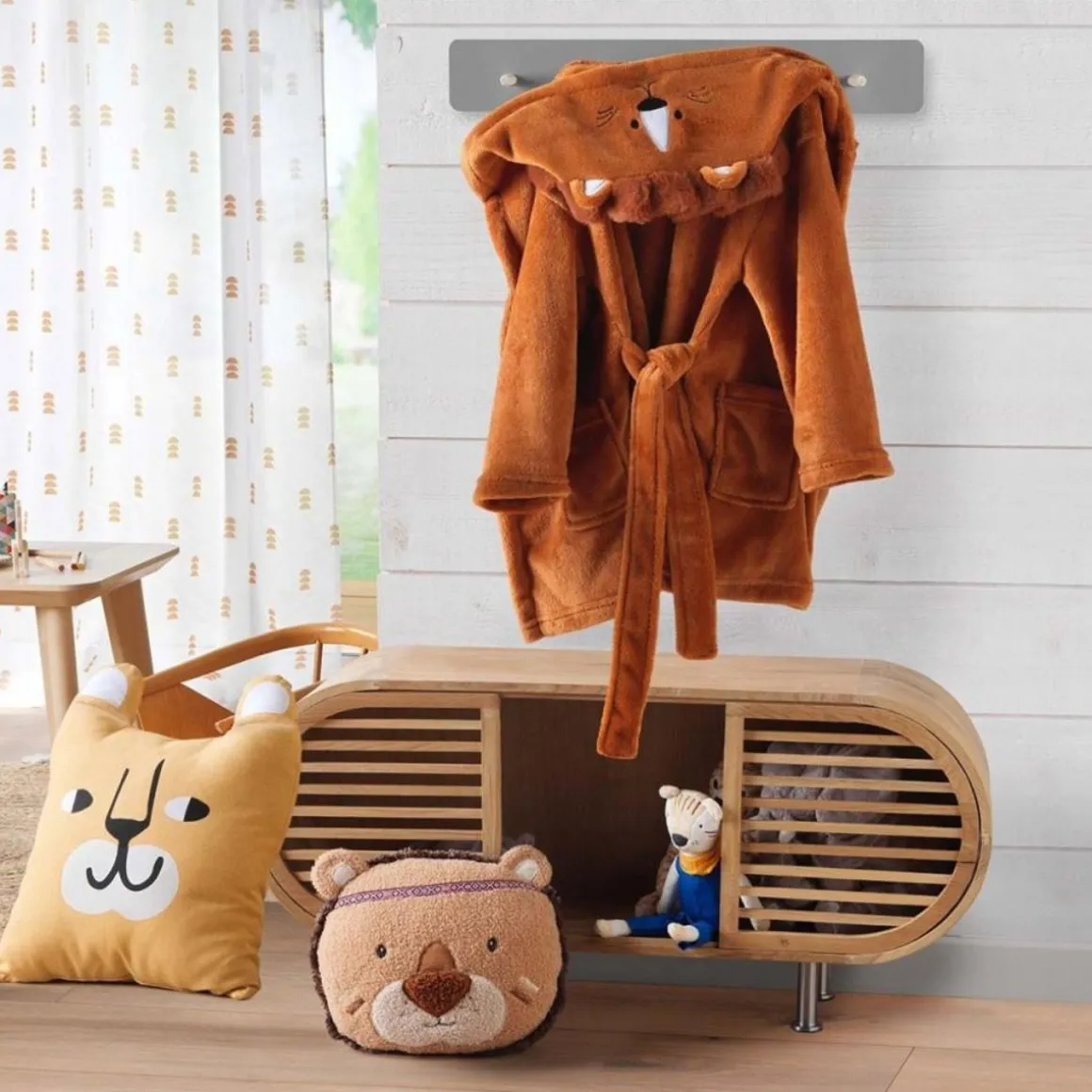 Changer la déco de la chambre de votre enfant passe aussi par les petits accessoires comme le coussin rond Fantaisie Lionceau fabriqué en polyester au motif d’une jolie tête de lionceau avec des oreilles. Coussin de dimensions 30 x 30 cm.Informations sur le coussin 30×30 cm Fantaisie Lionceau :Dimensions : 30×30 cmComposition : 100% polyester