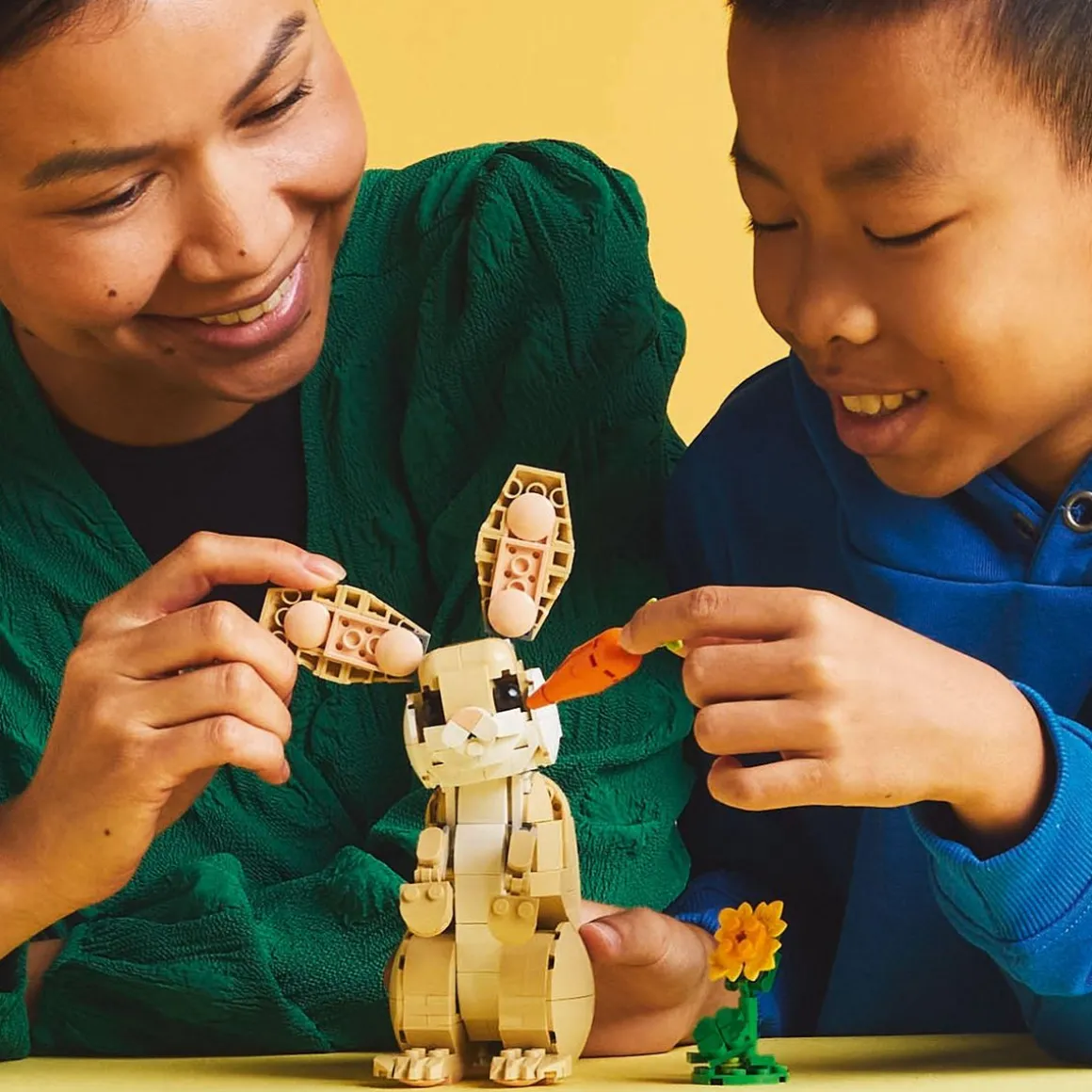 Ce set LEGO® de 326 pièces inclut un adorable lapin à construire mesurant plus de 19 cm de haut