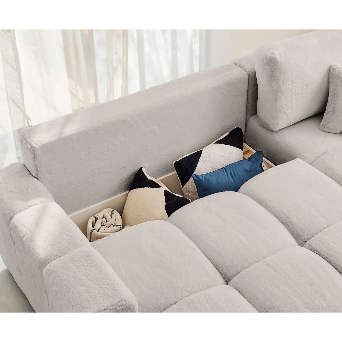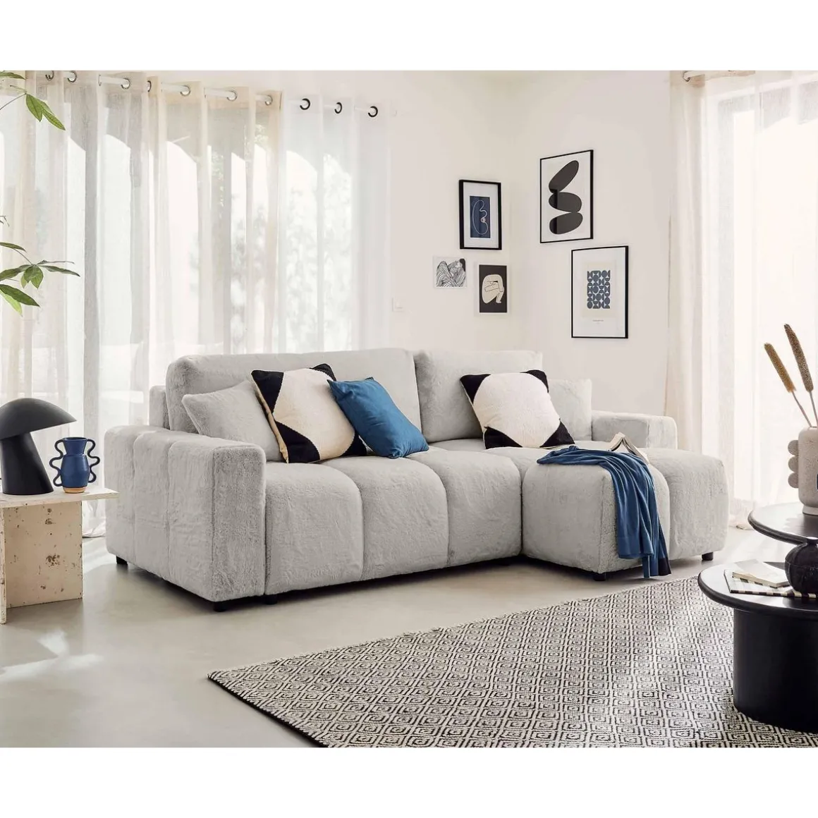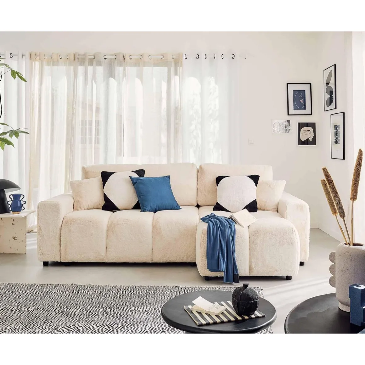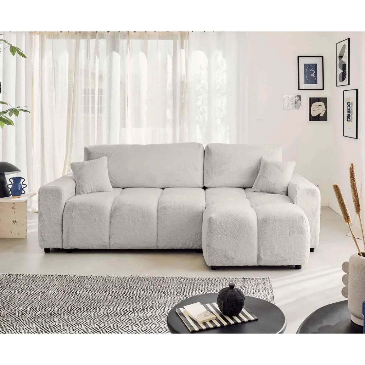 Véritable icône du design, le canapé d’angle réversible 4 places Crocus est la parfaite rencontre entre confort et tendance. Son look original en forme de nuage associé à son revêtement en fausse fourrure tout doux fait de ce canapé, un modèle authentique. Son assise moelleuse et rebondie vous enveloppera pour de doux moments de détente.