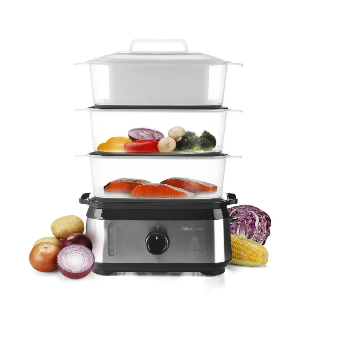 Le cuiseur vapeur Q.5756 de QILIVE est idéal pour cuire des légumes, du poisson, de la viande et du riz à la vapeur, tout en préservant les nutriments et les saveurs des aliments. C’est un outil pratique pour une alimentation saine et équilibrée.