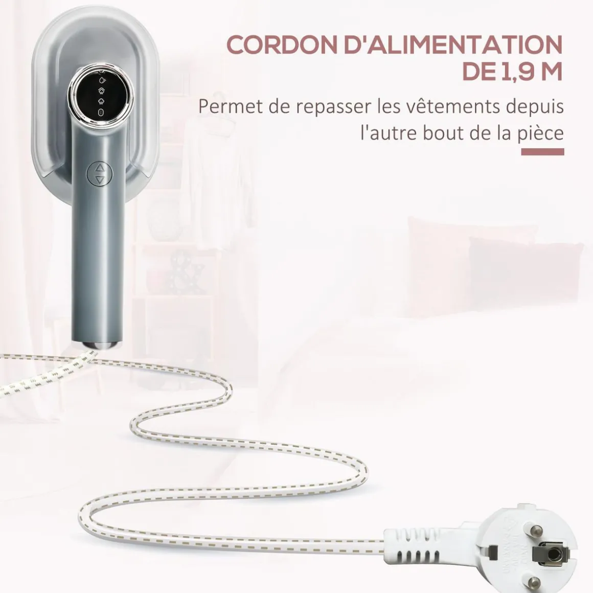 – Facilement maniable à l’aide du cordon d’alimentation de 1,9 m