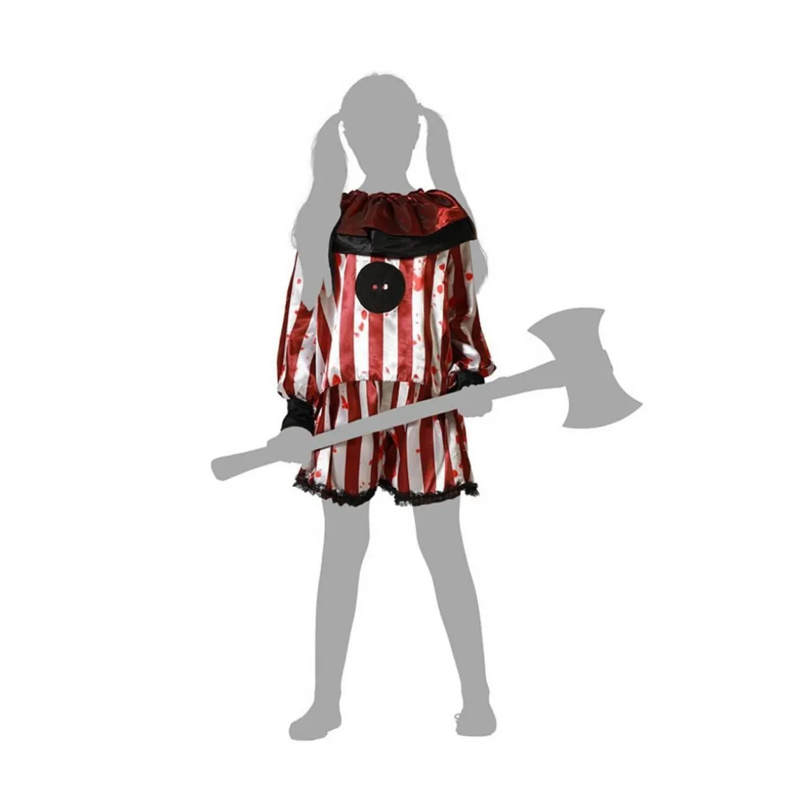 7/9 ans (122 à 134 cm) – A présent le clown n’a plus envie de rire … il est venu pour terroriser petits et grands et prendra un malin plaisir à vous effrayer !Contient : un haut et un shortAttention ne contient pas de perruque ni de hache ni de collants Age minimum : la naissance