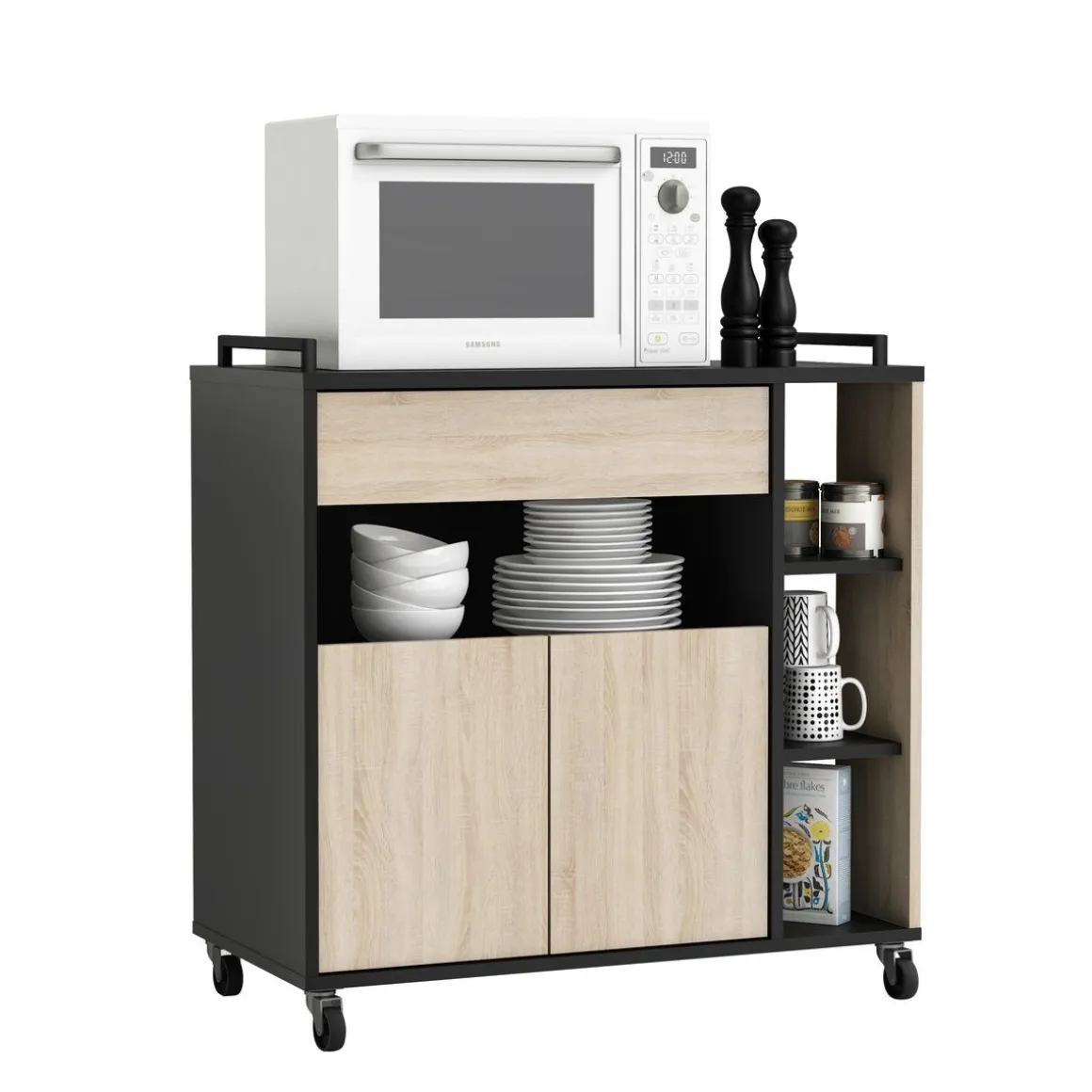 Pratique les 2 poignées noires sur chaque côté et les 4 roulettes pour faciliter le déplacement