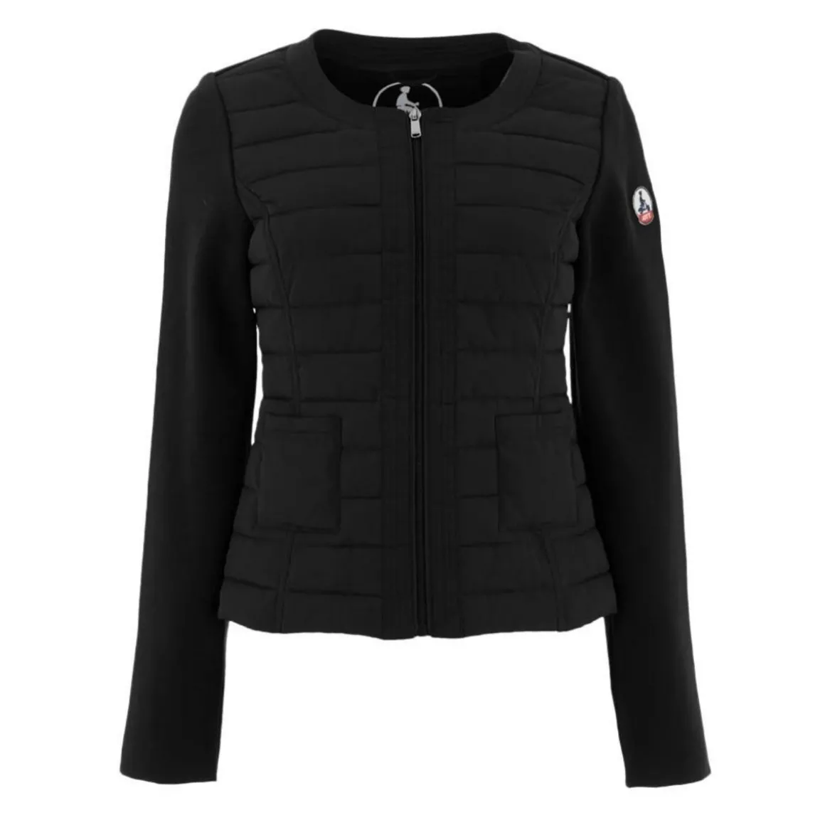 Optez pour cette doudoune JOTT Coloris : NoirCol rondManches longues Composition : 100% polyamideBi-matière : polyamide matelassée et maille 100 % cotonCoupe ajustéeCol rond et fermeture surpiqués2 petites poches plaquées avantLogo feutrine manche gauche