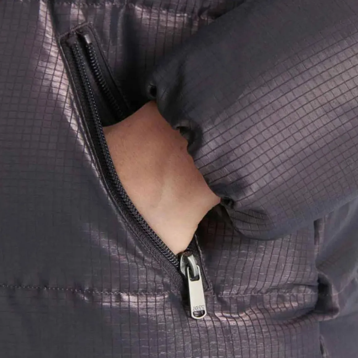 Doudoune pour femme de la marque Laponi ! Couleur : Violet foncéCoupe altiqueFermeture zippéeAvec capuchePoches latérales zippéesComposition : 75% polyamide, 25% polyester