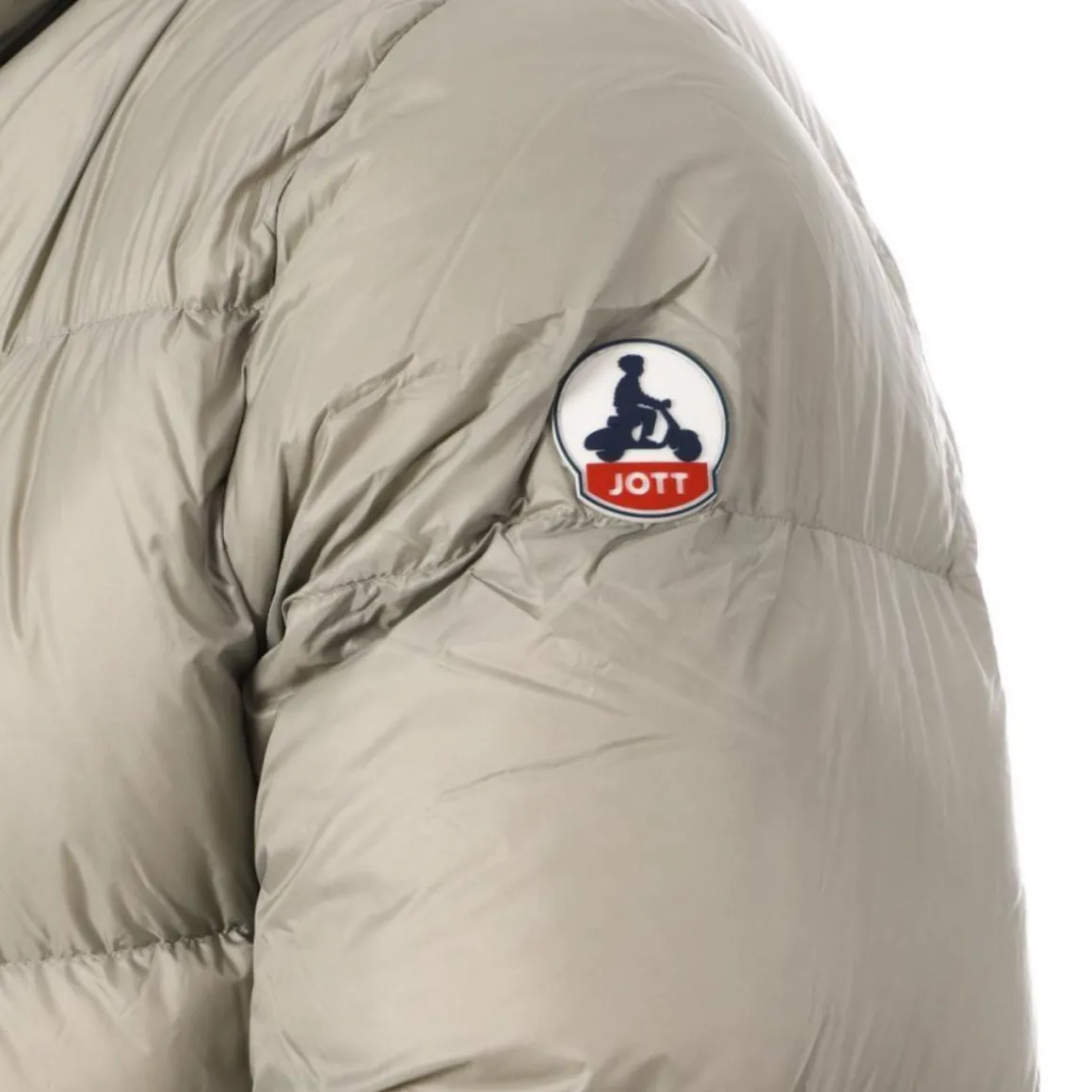 Craquez pour la doudoune de la marque JOTT ! Coloris : Vert Col à capuche Fermeture zip Deux poches à rabat devant Poche poitrine Matelassée et garnie de plumes et duvet Logo sur le manches gauche Matière : 100% polyamide