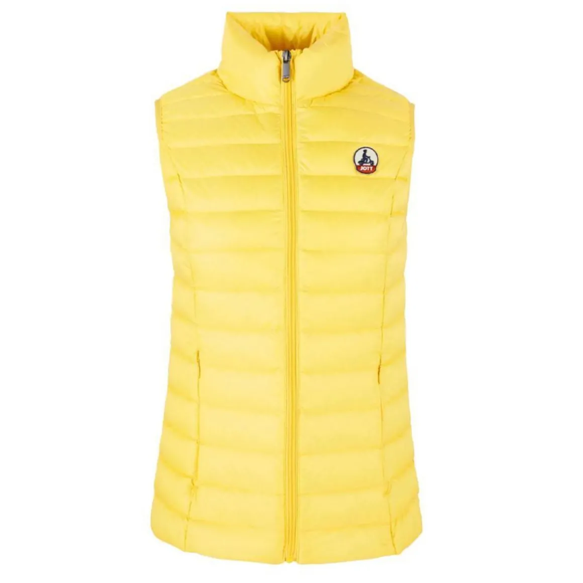 Optez pour cette doudoune JottColoris : JauneMatière matelassée satinée et déperlanteGarnissage en plumes et duvet certifié <>Coupe ajustéeCol montant matelassé2 poches côtés invisiblesCoutures intérieures de couleur contrastéesLogo feutrine original manche gauchePochonnableMatière : 100% polyamideDoublure : 100% polyamideRemplissage : 90% duvet, 10% plumes