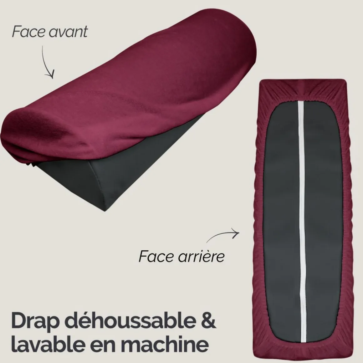 Drap housse de protection en éponge pour coussin demi-rond 66 cm x 22 cm x 12 cm de table de massage – Prune