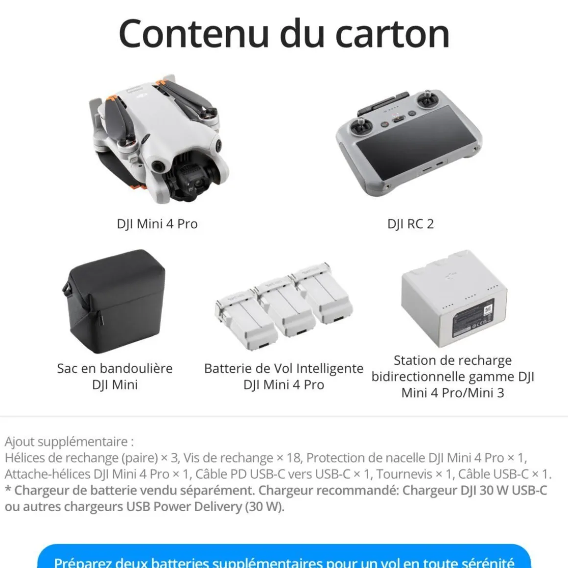 | Modèle | DJI Mini 4 Pro Fly More Combo (DJI RC 2) | |
