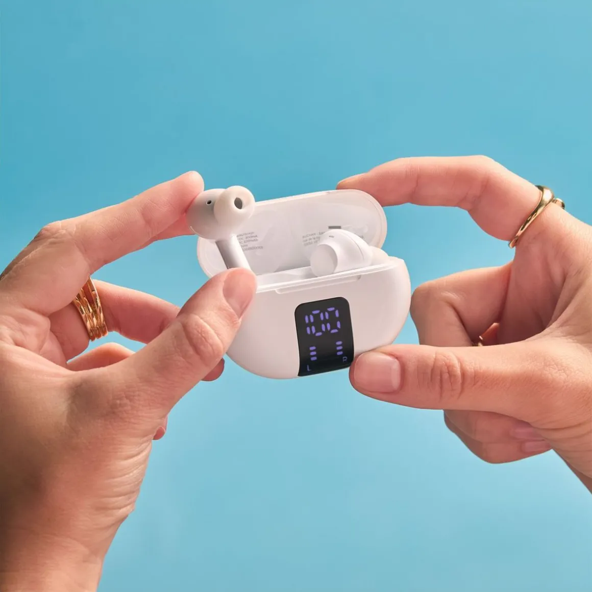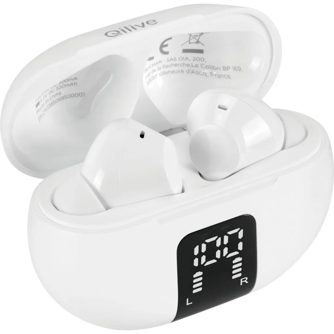 Découvrez les écouteurs intra auriculaires Q1421 Qilive avec écran LED qui vous permettra de suivre le niveau de votre batterie en un coup d’oeil.