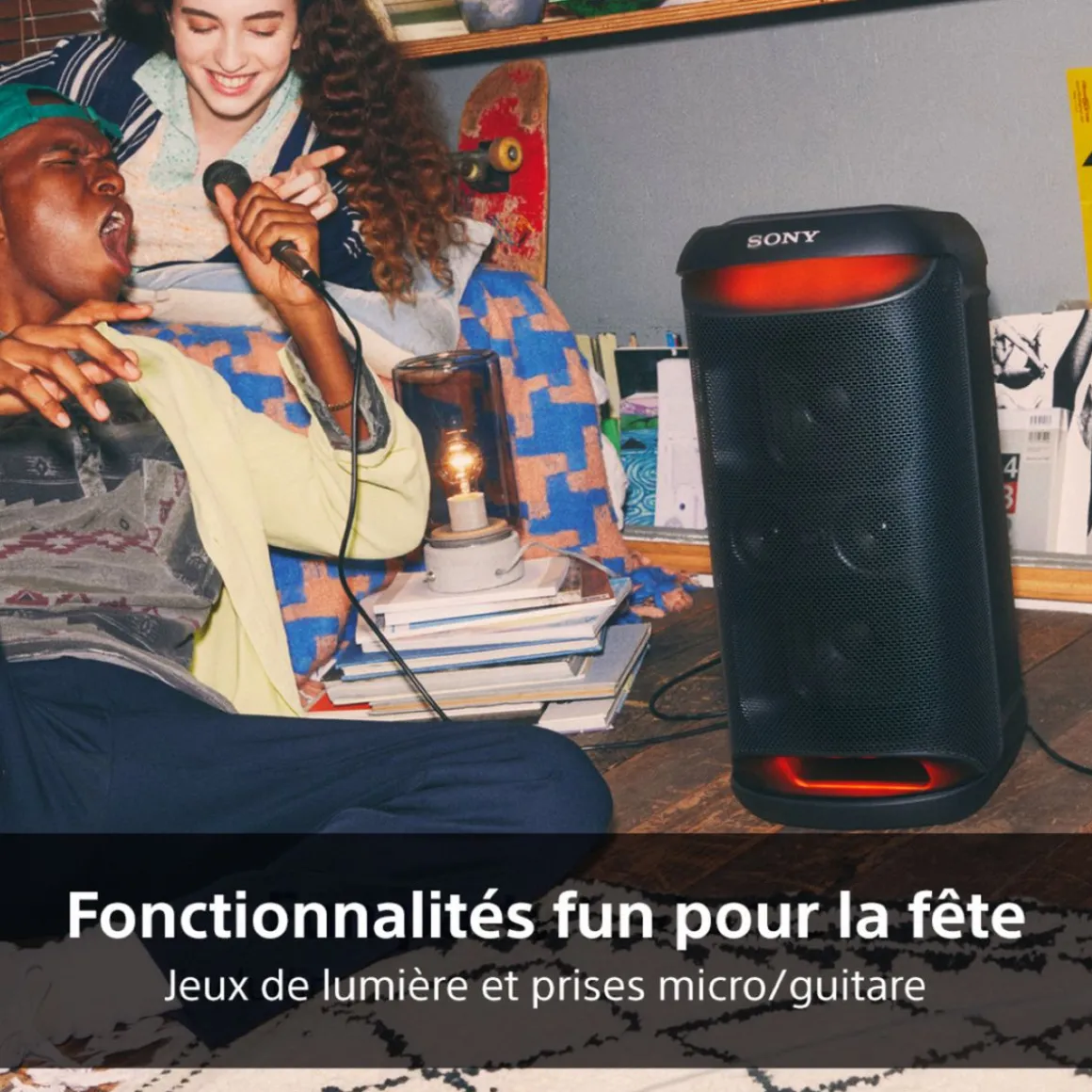 | Entrée micro / guitare | oui, une entrée micro sur laquelle en connectant une guitare, l’enceinte devient un ampli de guitare | |
