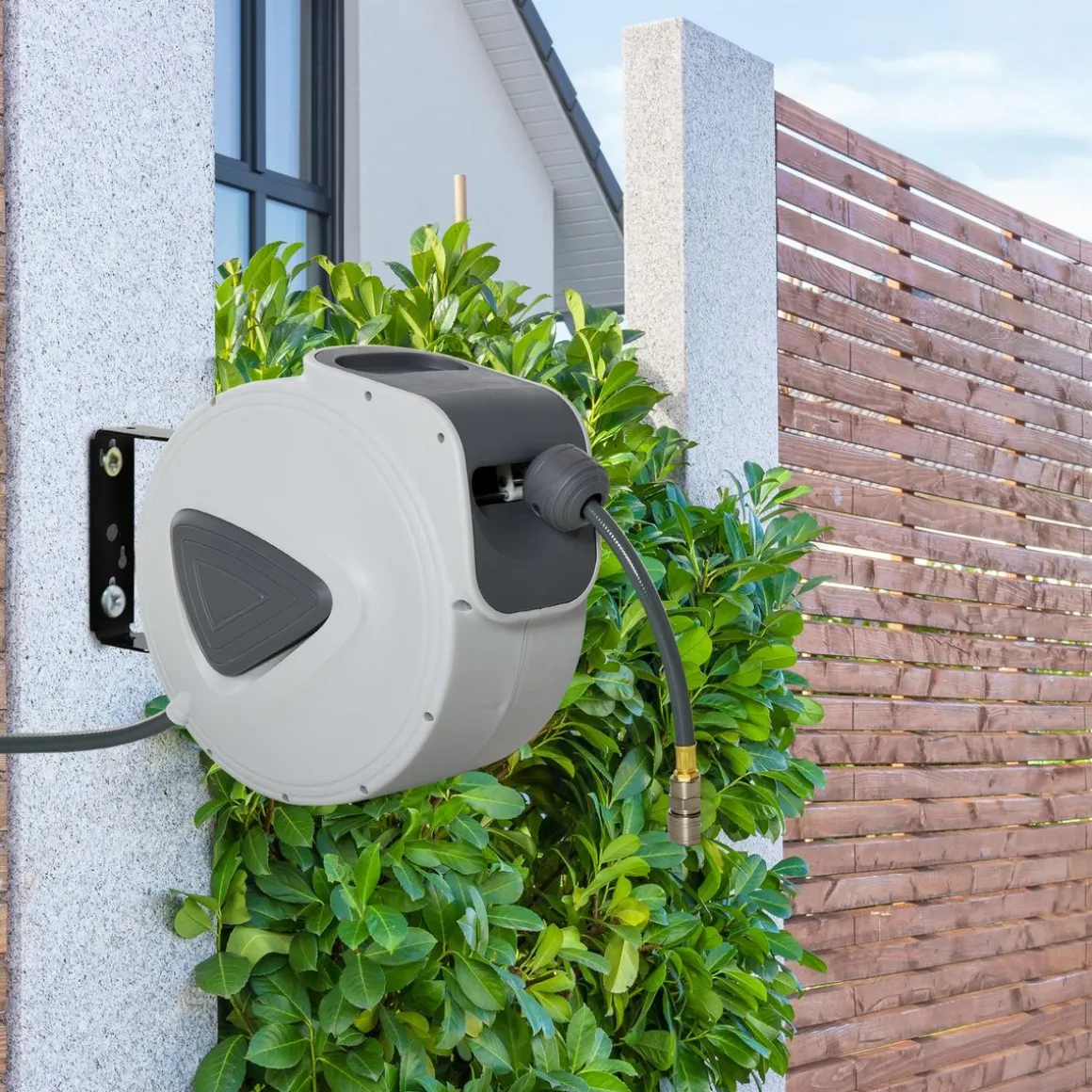 – Ce tuyau s’enroule correctement et rapidement après l’usage. Puisque l’enrouleur est livré déjà prémonté, Vous pouvez le mettre en service immédiatement !