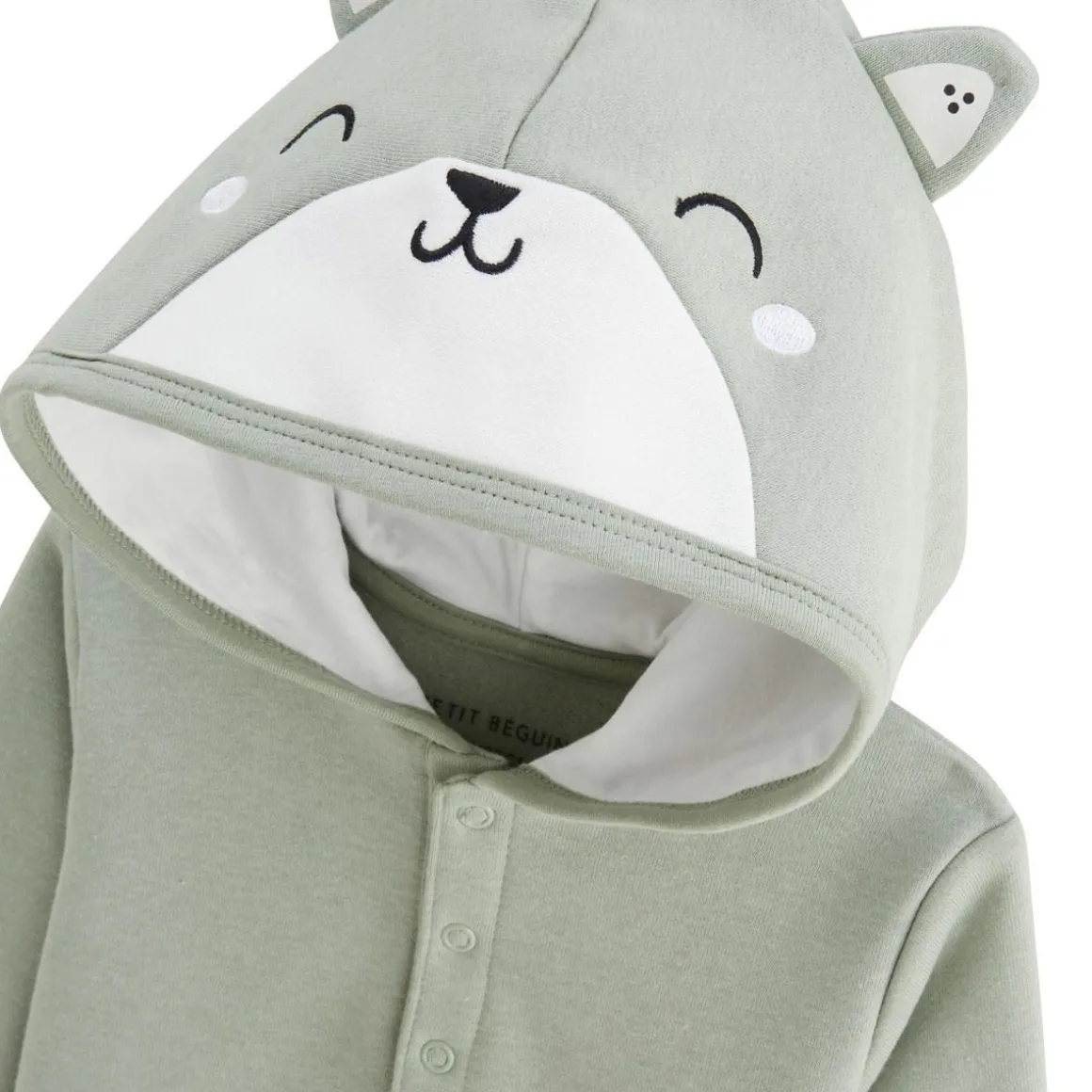 Quoi de mieux que cet ensemble pour un look pratique et stylé ? On adore particulièrement les détails du sweat : sa poche kangourou, et sa capuche avec son petit personnage trop mignon ! Sans oublier qu’il est en molleton tout chaud et douillet pour le confort de bébé. Ensemble en molleton chaud et tout doux Des petites oreilles et un visage à croquer sur la capuche Produit labellisé STANDARD 100 by OEKO-TEX ®(2309200 CENTEXBEL)