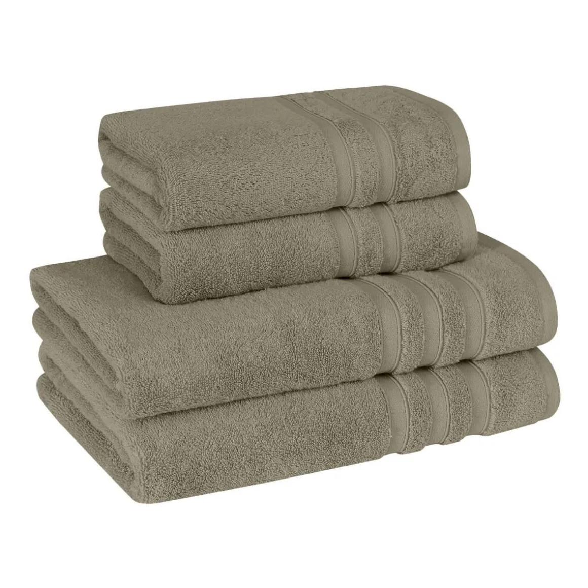 Découvrez le lot de 4 pièces de serviettes de bain composé de 2 serviettes de toilette 50x100cm et 2 draps de bain 70x140cm. Pour se sécher les mains et les cheveux, ou en sortie de bain, ce pack convient à tous vos besoins pour votre salle de bain. Il est constitué d’une éponge tissée en 600 gr/m² ce qui lui procure une excellente absorption et une douceur extrême. Un pack idéal à offrir ou s’offrir !