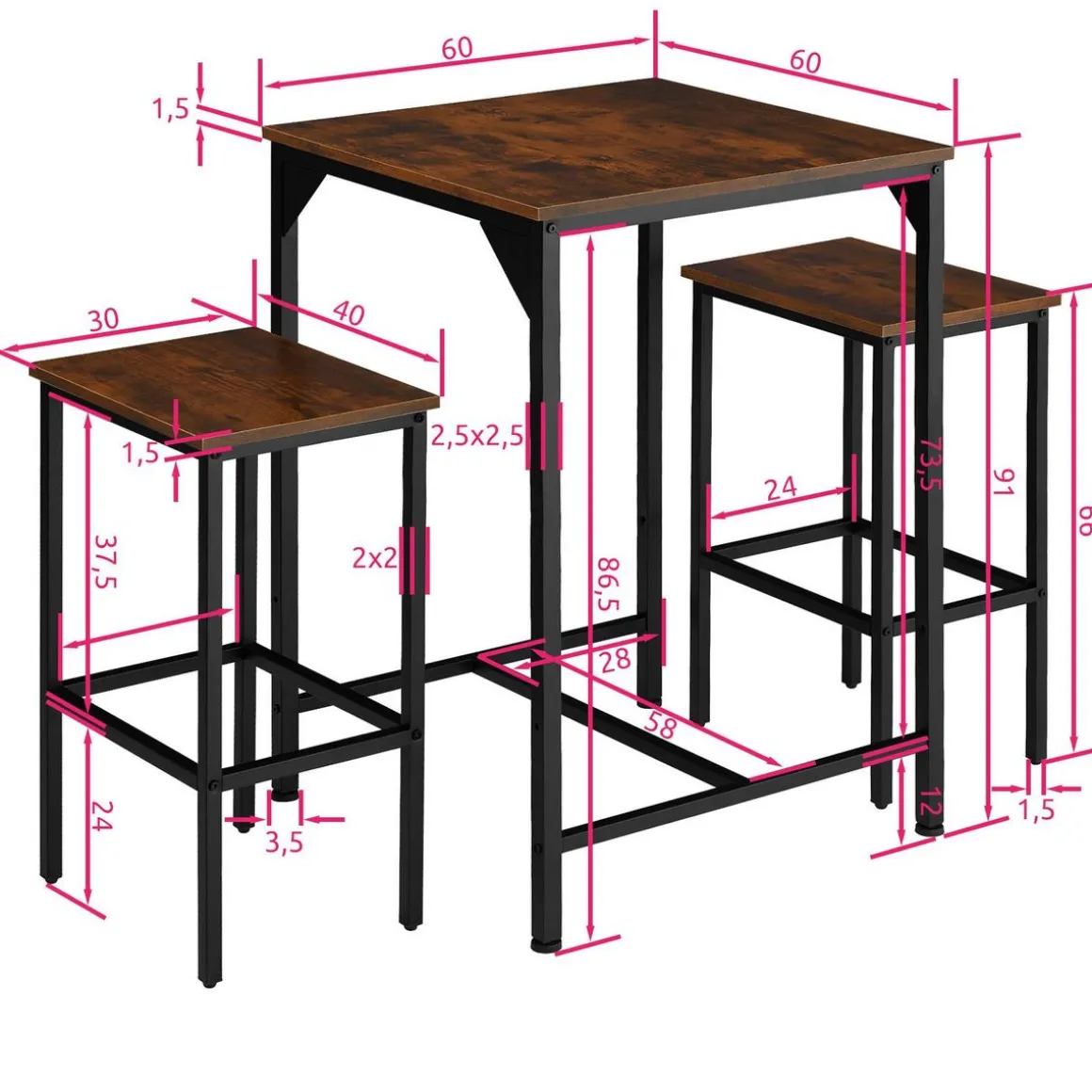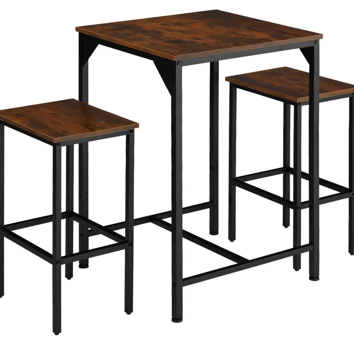 - Ensemble de 3 pièces composé d’une table haute et de deux tabourets de bar au look industriel tendance