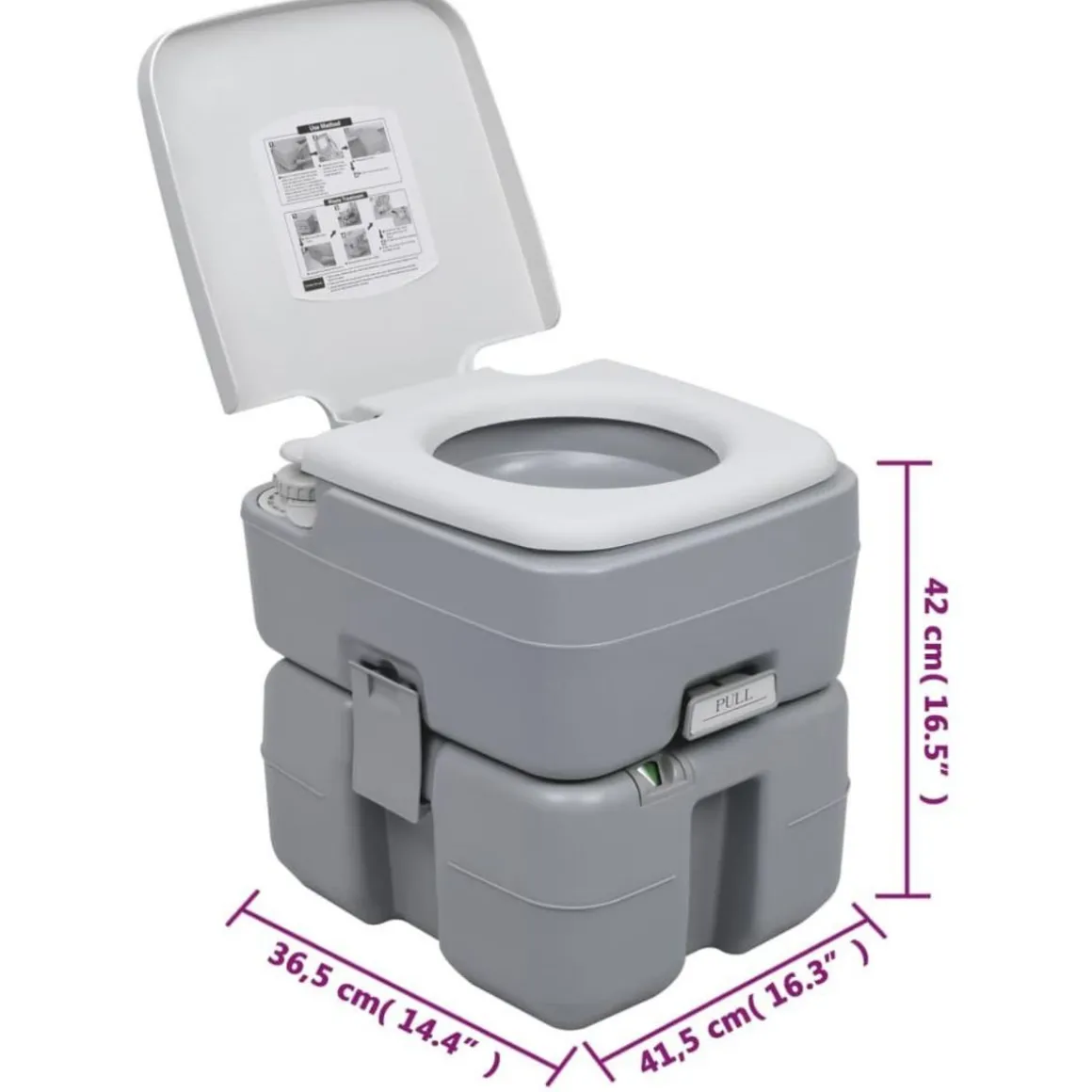 - Toilettes pratiques : les toilettes disposent d’un reservoir a dechets de 20 litres qui permet une utilisation suffisante pendant 4 a 5 jours pour un adulte. La toilette mobile est conçue avec une chasse d’eau de type T et a 3 voies pour faciliter l’elimination des dechets.