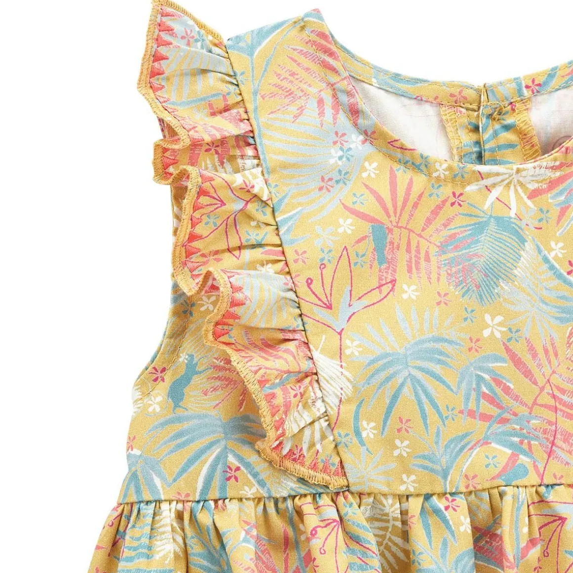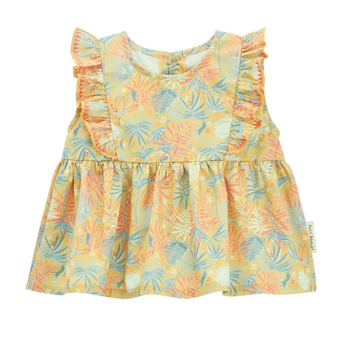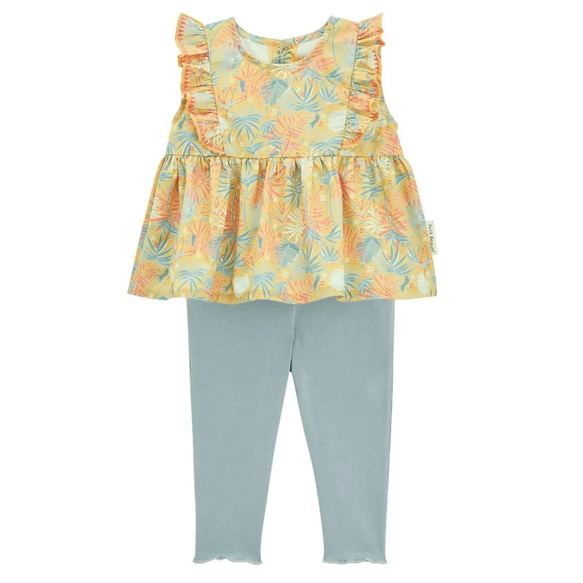 Voici le parfait combo ! Ce bel ensemble est constitué d’une blouse sans manches agrémentée de jolis feuillages et de volants trop mignons sur les épaules. On valide aussi le legging trop pratique en coton ! De jolis détails brodés sur les manches à volants Un legging en coton ultra confortable avec taille élastiquée