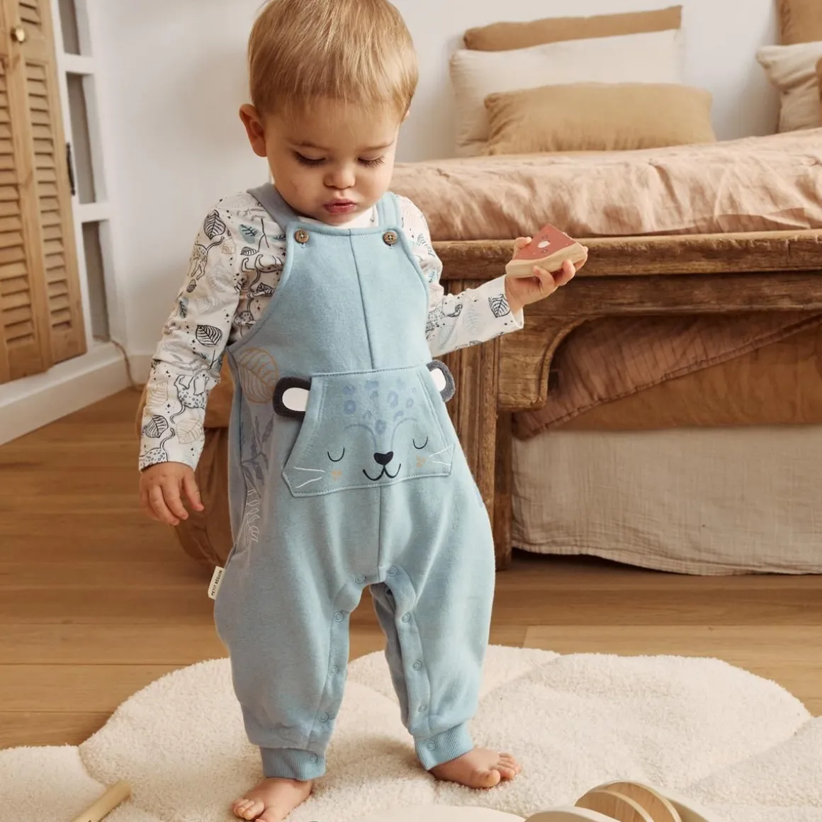 Ensemble salopette bébé en molleton et t-shirt Félintrépide