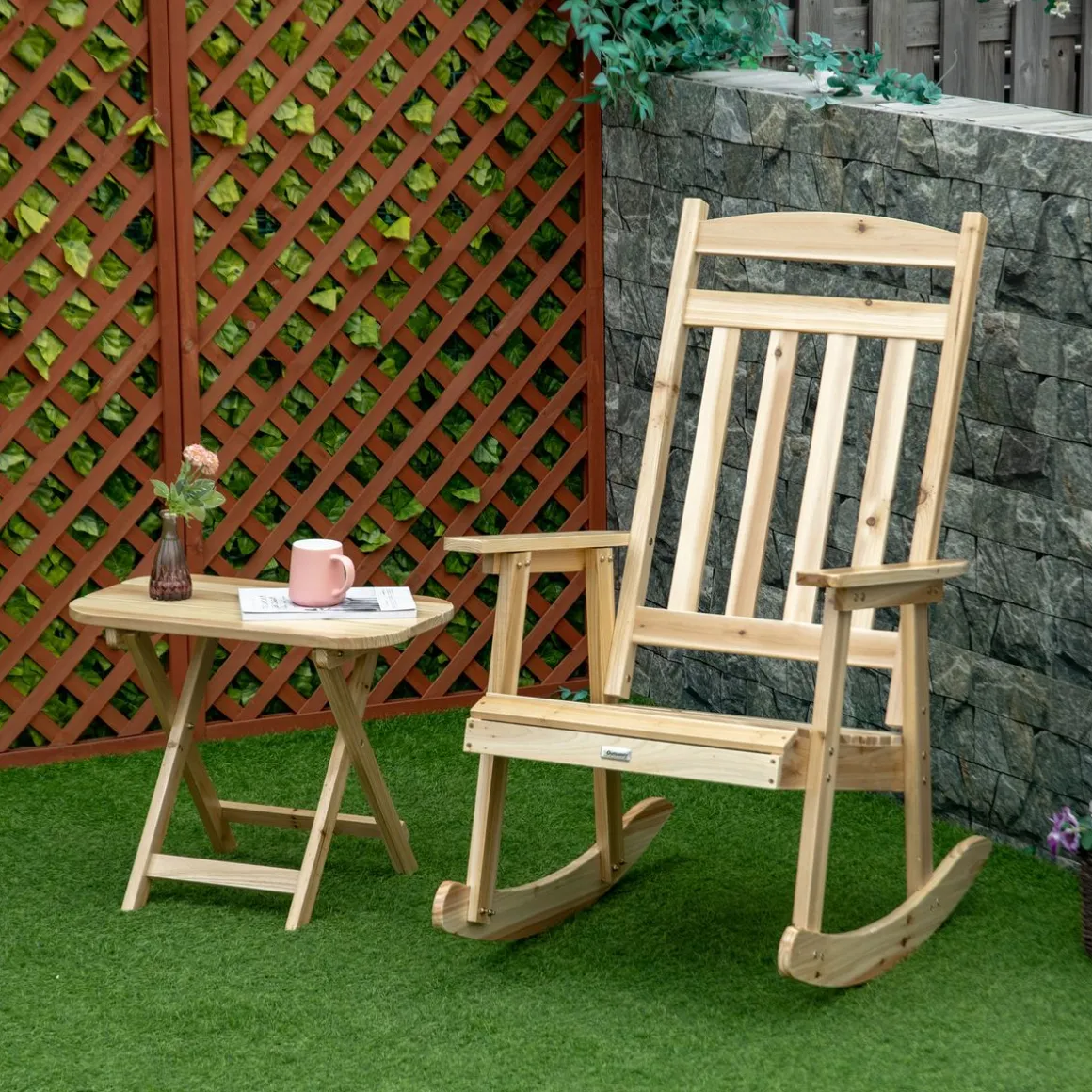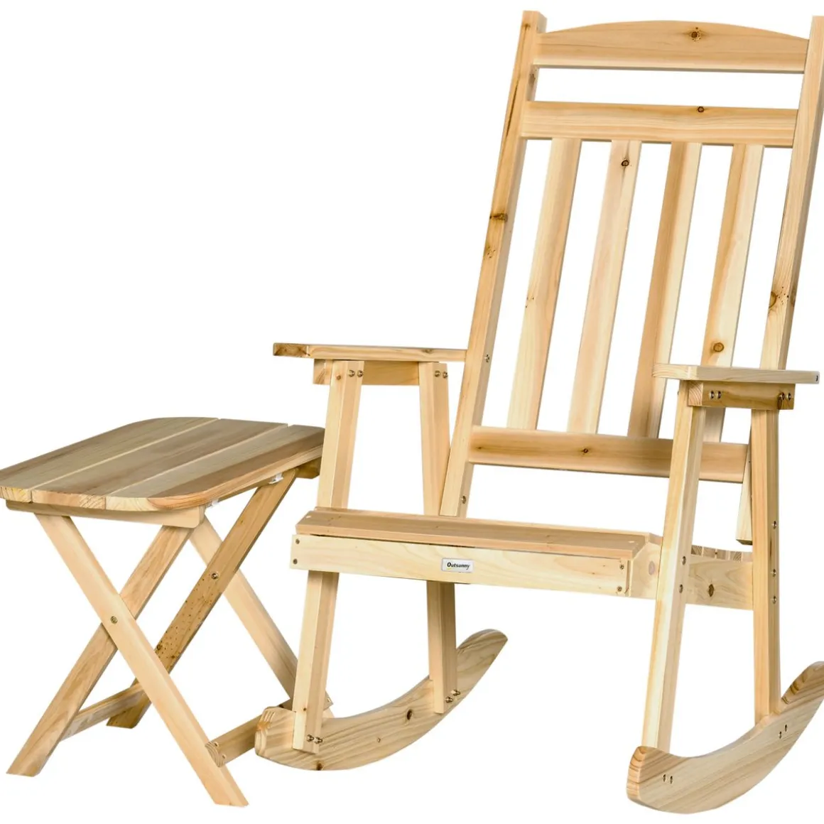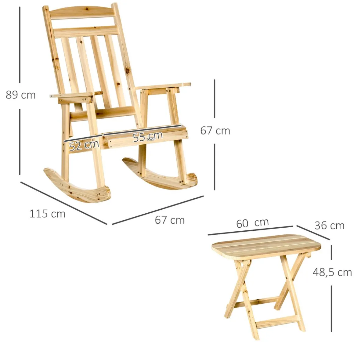 – Petit salon de jardin composé d’un fauteuil à bascule et d’une table basse