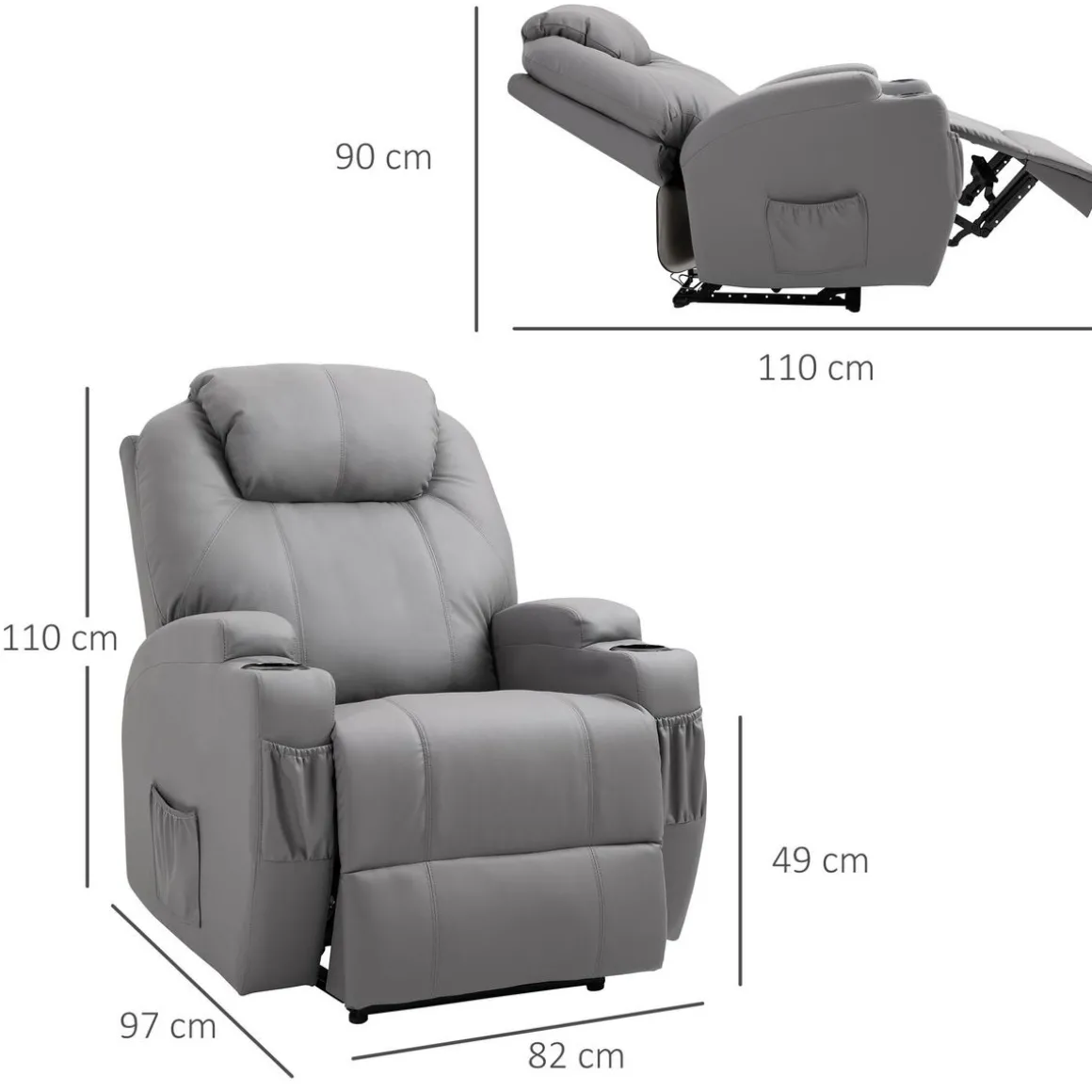 – Fauteuil de massage relaxation doté de 8 points de massage par vibration, dont 4 points pour le dos, 2 points au niveau des cuisses et 2 points au niveau des mollets