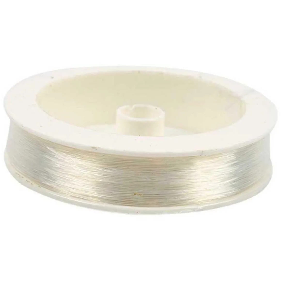 Bobine de fil transparent de la marque Creotime. Très résistant, transparent, quasiment invisible dans certaines dispositions, le fil de nylon sert à confectionner des bijoux fantaisie, tels les bracelets et les colliers. Ce fils mesure 100 m et est épais de 0,5 mm.