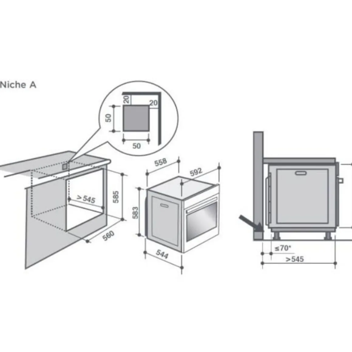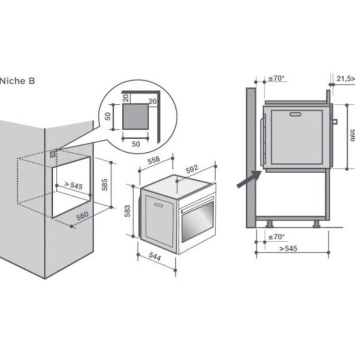 Dimensions Encastrement (LxHxP) : 56 x 58,5 x 55,5 cm.