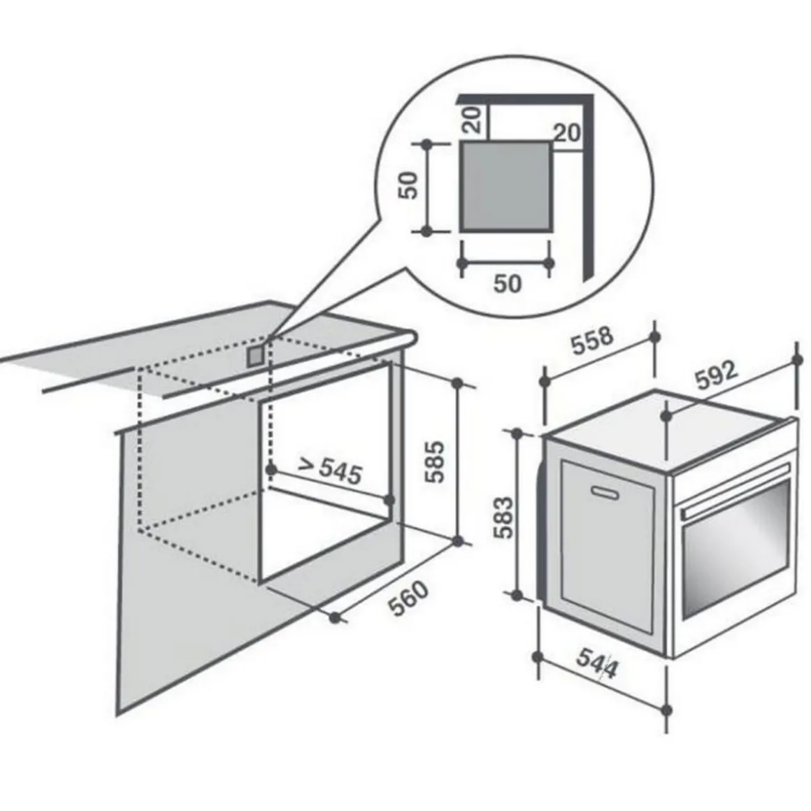 Dimensions Encastrement (LxHxP) : 56 x 58,5 x 55 cm.