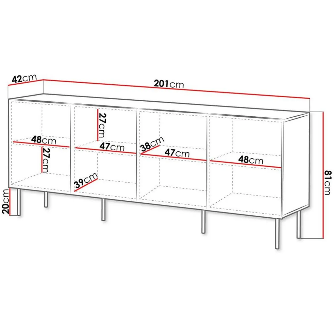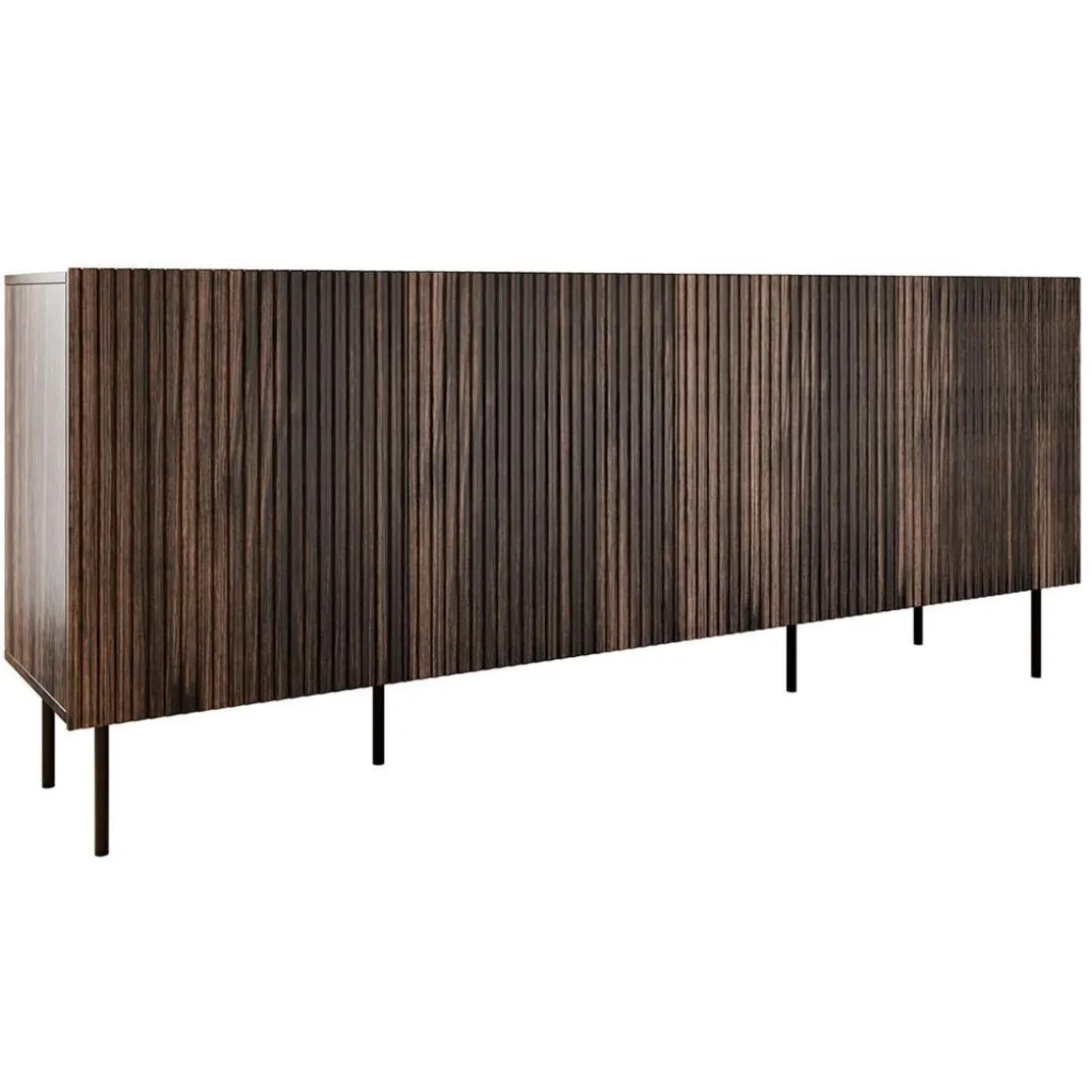 Confectionné en bois et surélevé par des pieds en métal, le modèle de buffet bas Franco vous charmera par ses finitions soignées et son allure sobre très en vogue. Vous adorerez ses multiples espaces de rangement : derrière 4 portes, vous trouverez pas moins de 8 espaces de rangement aux dimensions généreuses. Vous pourrez alors aisément y ranger vos nappes, vaisselle, décorations, mais aussi vos magazines ou tout autre objet personnel de votre choix. La surface lignée de ce joli buffet est parfaite pour créer un joli contraste ainsi qu’un bel effet de volumes, tout en conservant une simplicité très esthétique. De quoi parer votre espace séjour d’un atout de charme incomparable, et apporter une touche de chaleur dans votre pièce à vivre.