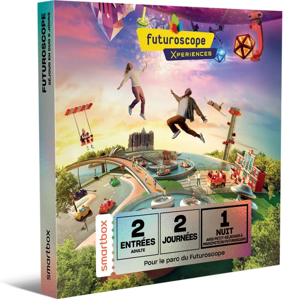 Ce coffret cadeau vous fait profiter d’un accès de 2 jours pour 2 adultes au Futuroscope, assorti d’une nuit avec petit-déjeuner. Le choix de l’hôtel se fait à la seule discrétion de Smartbox en fonction des disponibilités et des tarifs du moment.