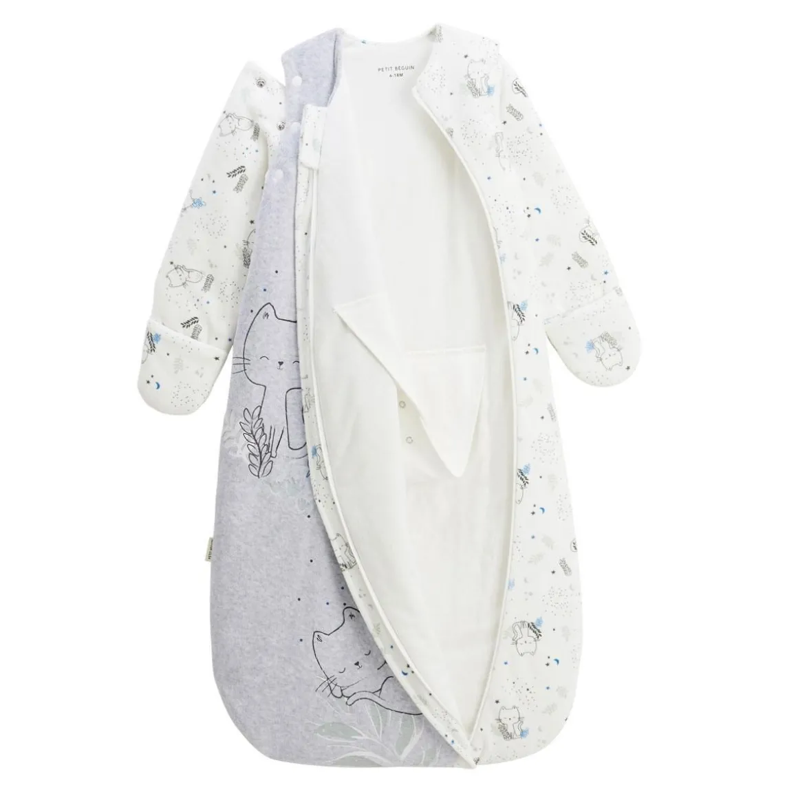 Pour offrir de douces nuits à bébé, notre petit chat Mallow est le compagnon parfait. Notre gigoteuse n’est pas juste une pièce pour bien dormir, elle a également des manches amovibles et des moufles intégrés, de quoi garder bien au chaud votre petit bout, idéal pour les nuits fraiches. Produit labellisé STANDARD 100 by OEKO-TEX ® (BJ020 189402 TESTEX) Manches longues amovibles par pressions Moufles intégrées pour plus de maintien au chaud En velours tout doux pour l’hiver Indice de chaleur : TOG 3 Pour plus d’informations, voir les avertissements et recommandations dans l’onglet détails et entretien