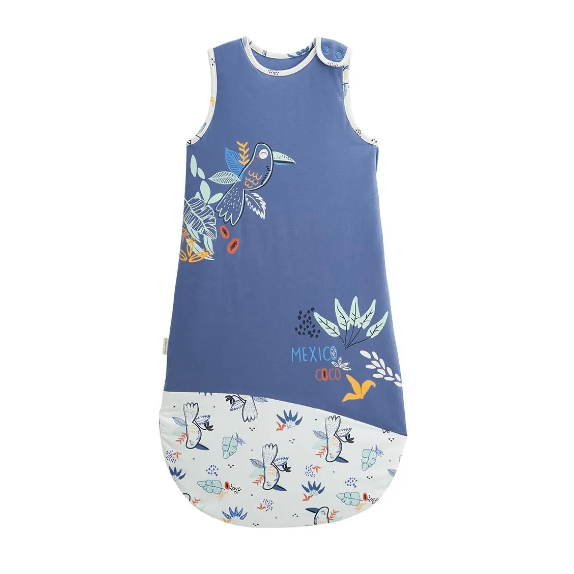 Pour des nuits tout en douceur et bien au chaud, notre gigoteuse Mexico est un véritable cocon. Avec ses tons bleu et écru qui nous emmène tout droit dans les tropiques, elle apporte un look adorable. Une gigoteuse douce et stylée, idéale pour vos petits explorateurs ! Produit labellisé STANDARD 100 by OEKO-TEX ® (2309200 CENTEXBEL) Cale bébé ajustable à l’intérieur jusqu’au 6/18 mois inclus Ouverture zippée sur toute la longueur avec patte de protection Longueur adaptable grâce à un système de pression en bas de la gigoteuse Indice de chaleur : TOG 2 Pour plus d’informations, voir les avertissements et recommandations dans l’onglet détails et entretien