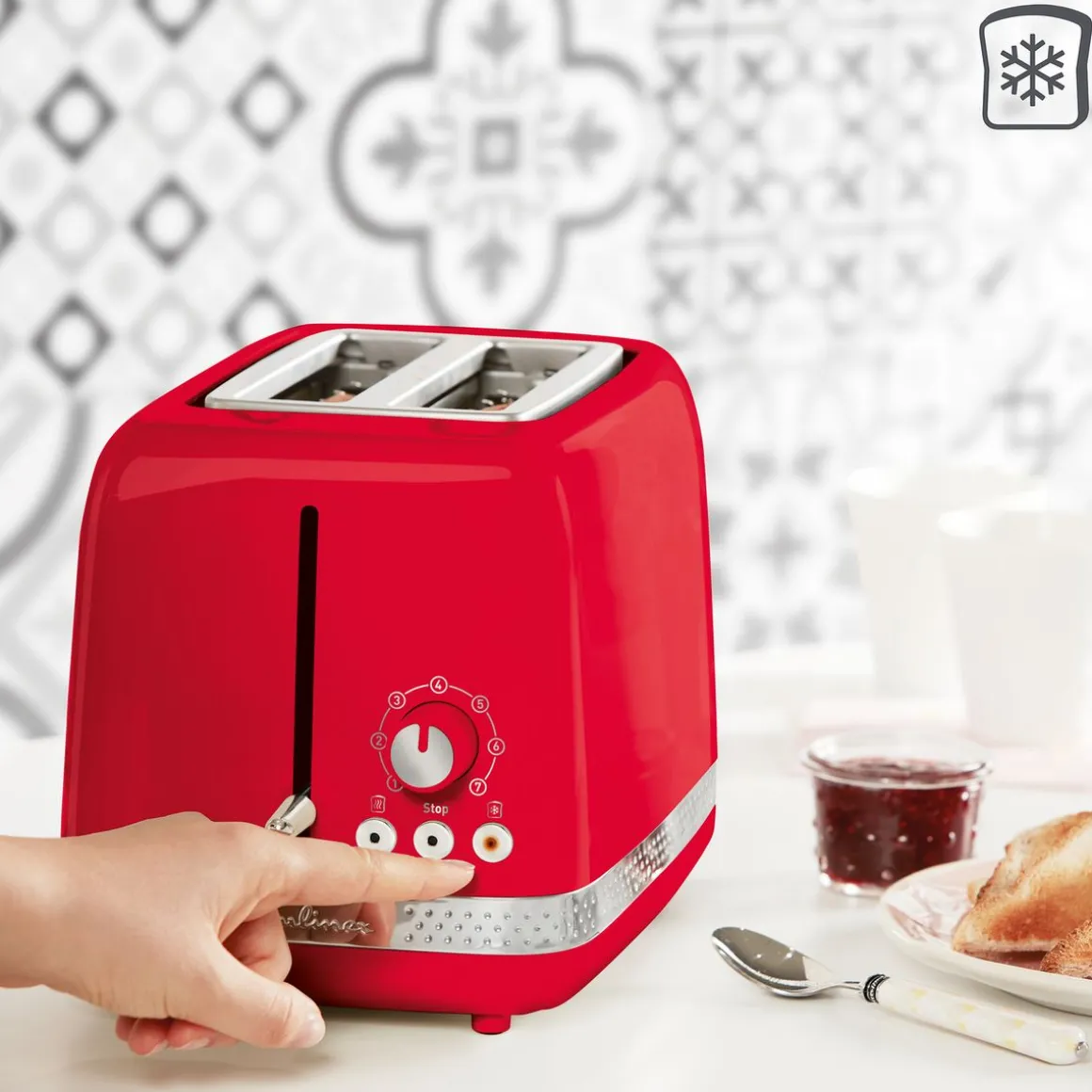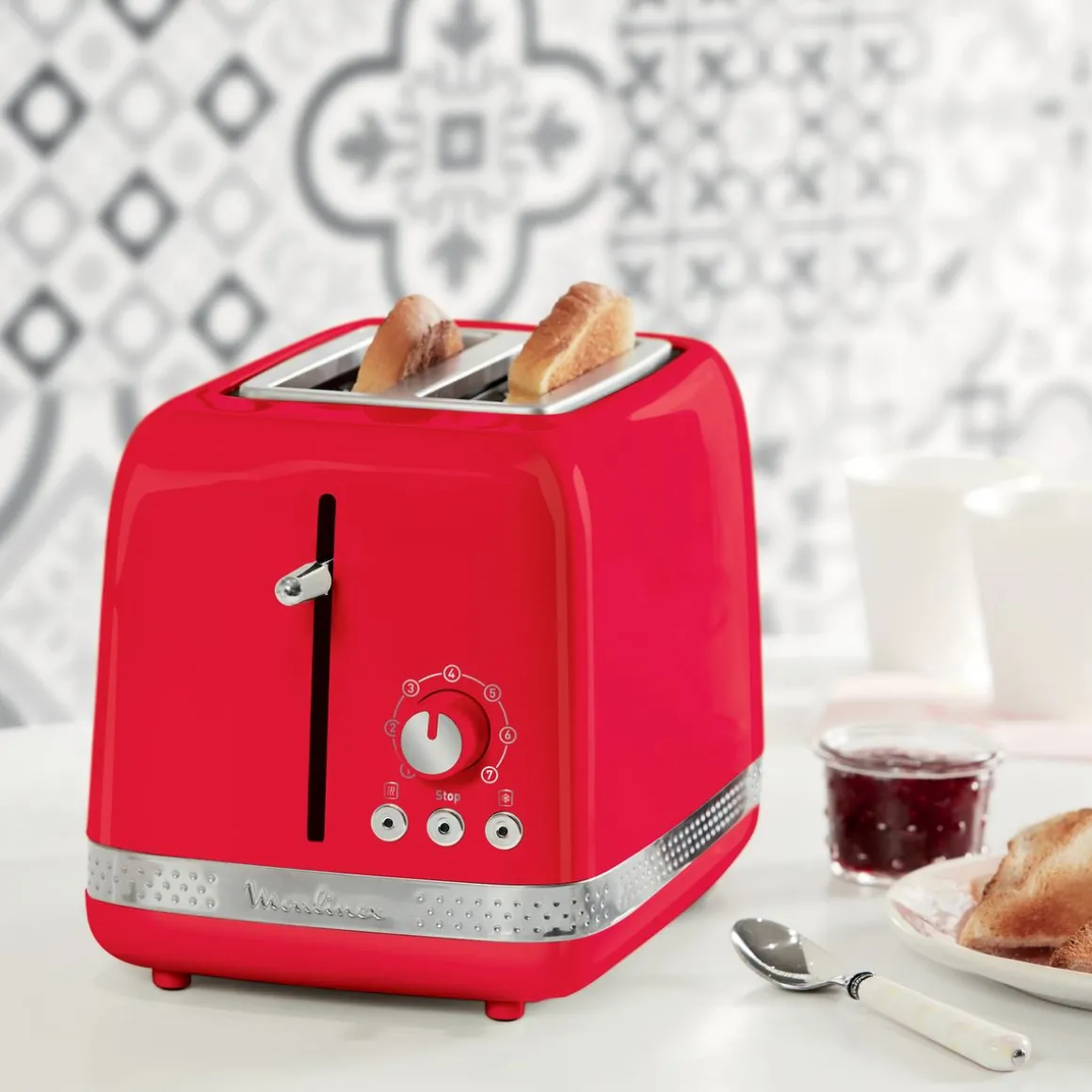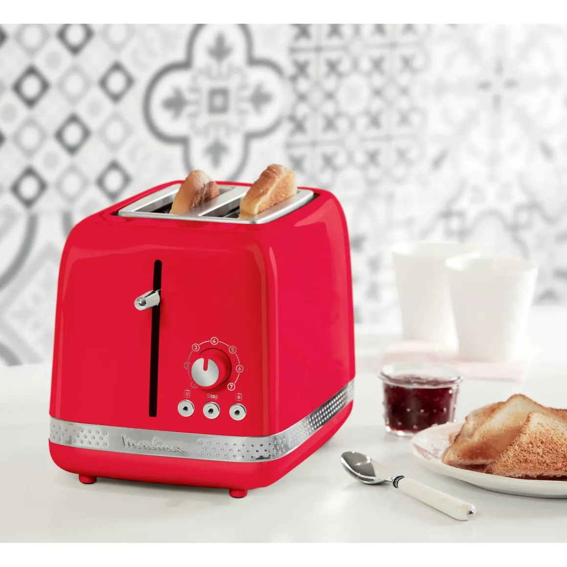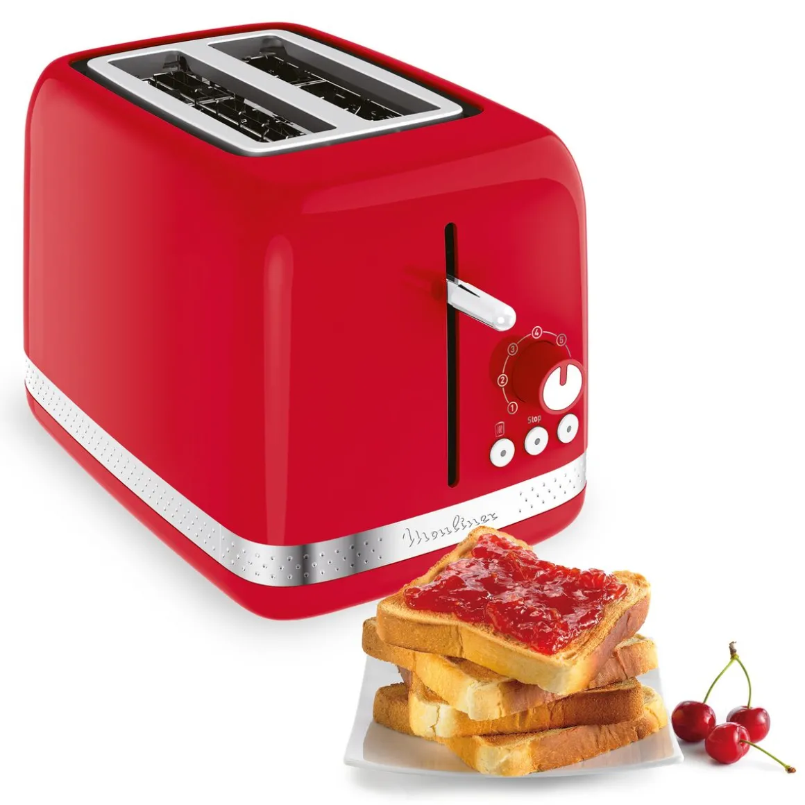 Le grille-pain MOULINEX LT300510 est un appareil électroménager conçu pour griller du pain de manière rapide et facile. Il est de couleur rouge et peut griller deux tranches de pain en même temps.