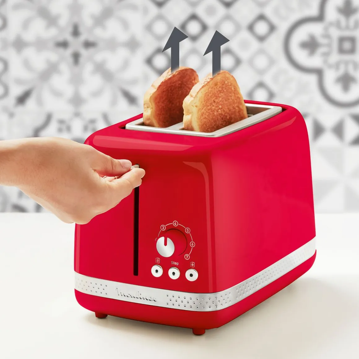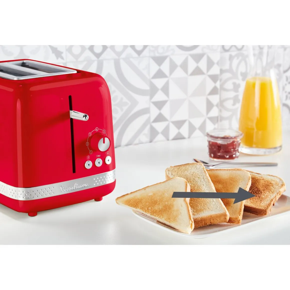 Le grille-pain MOULINEX LT300510 est facile à utiliser grâce à ses boutons de commande clairement marqués et son levier de commande qui vous permet de soulever le pain pour vérifier sa cuisson. Il est également facile à nettoyer car il possède un tiroir ramasse-miettes amovible.