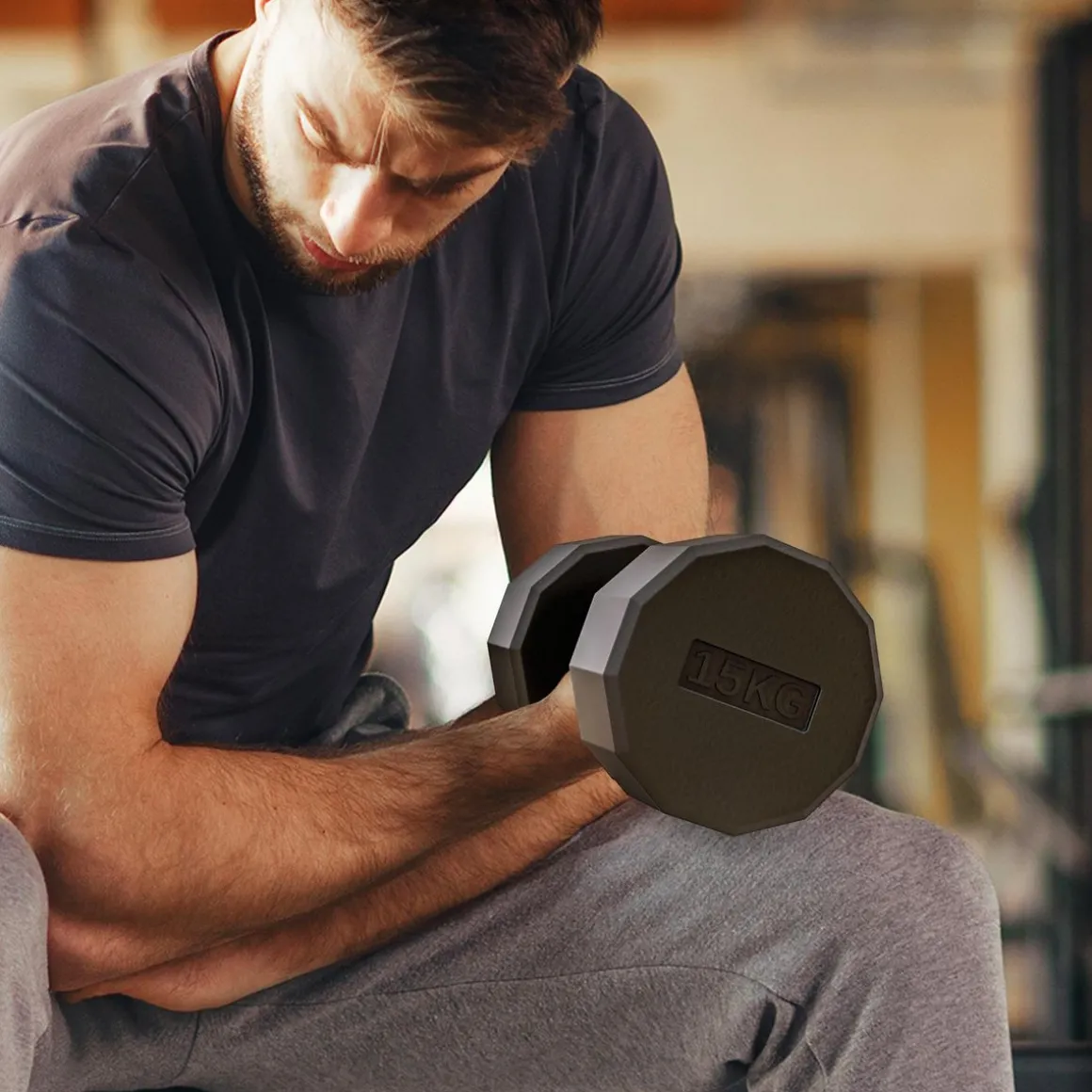 – Haltère court design à douze côtés qui empêche les haltères de rouler, empilage facile