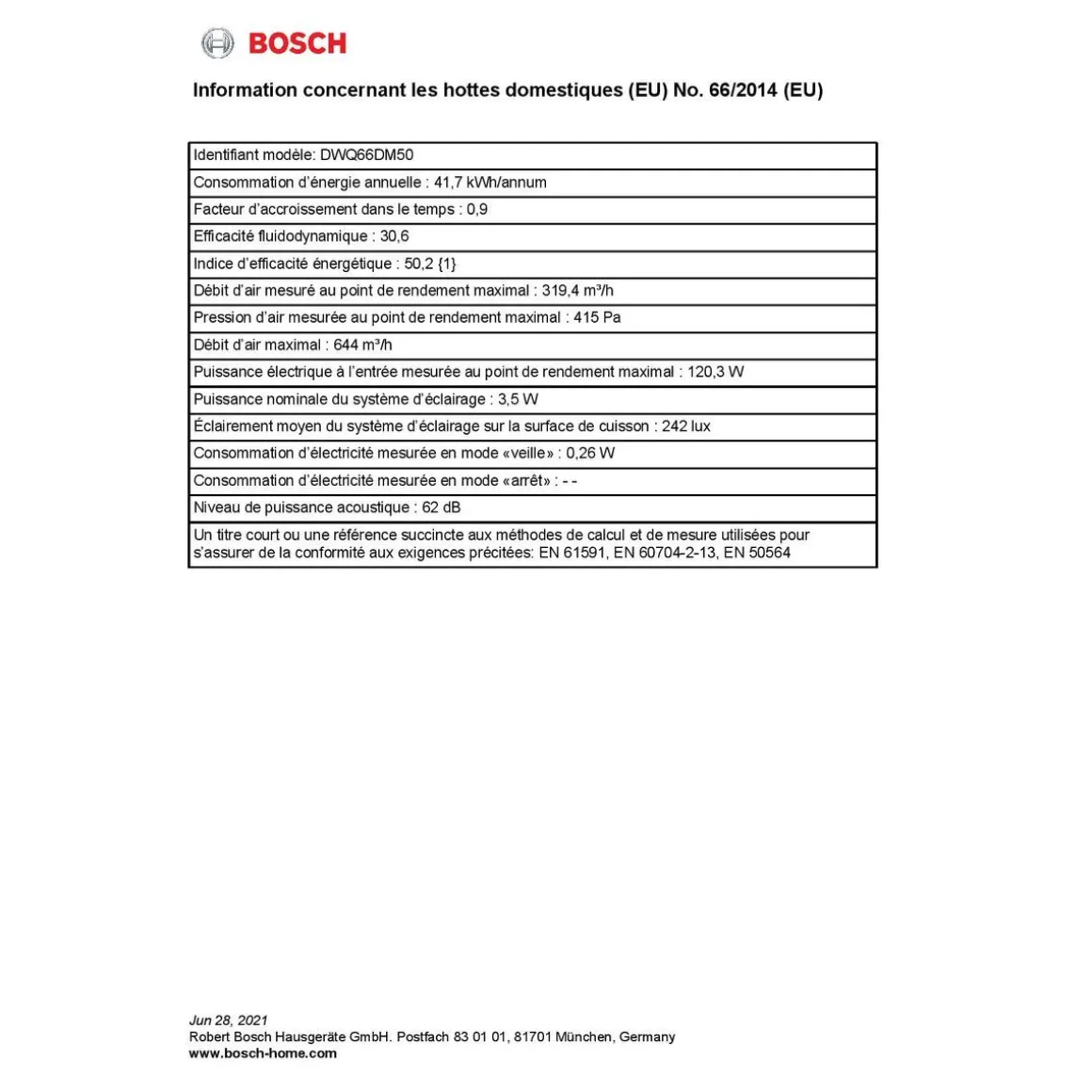Hotte décorative DWQ66DM50 – Évacuation et recyclage, 60 cm, 610 m3/h