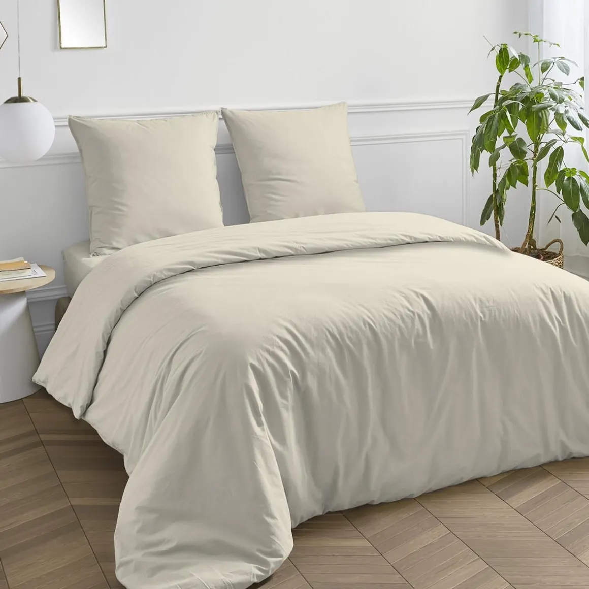 Housse de couette en coton unie 57 fils ne comprenant pas les taies d’oreiller.
