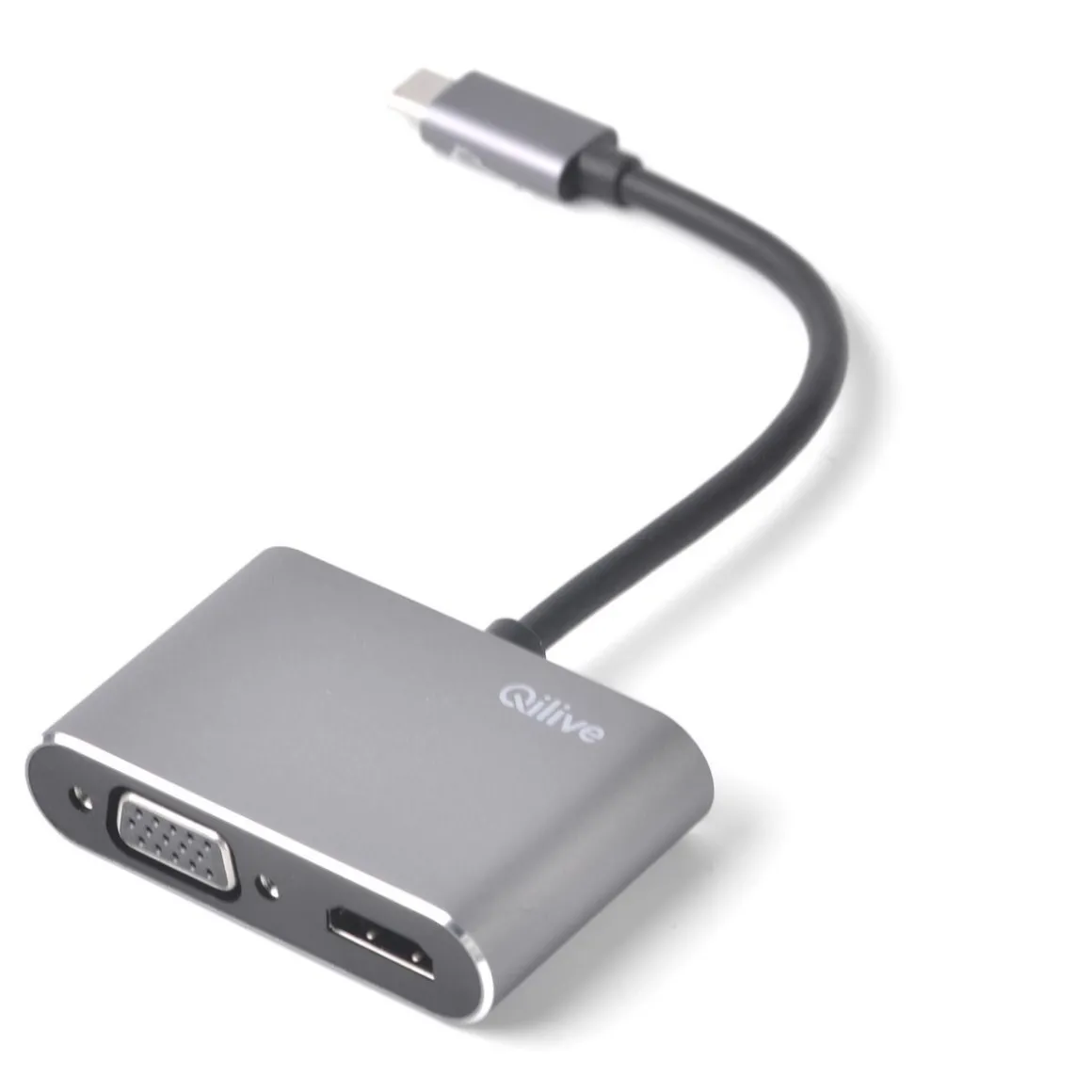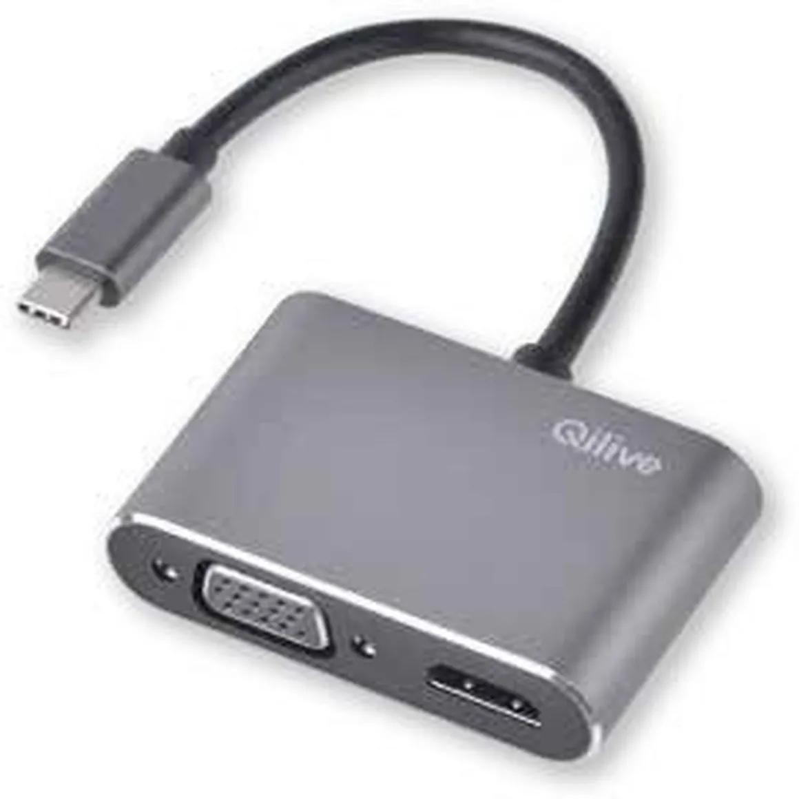 Ce hub 4 en 1 Qilive vous permet de brancher votre appareil à une prise VGA et HDMI, mais vous offre aussi une prise USB C et une prise USB rapide (3.0).