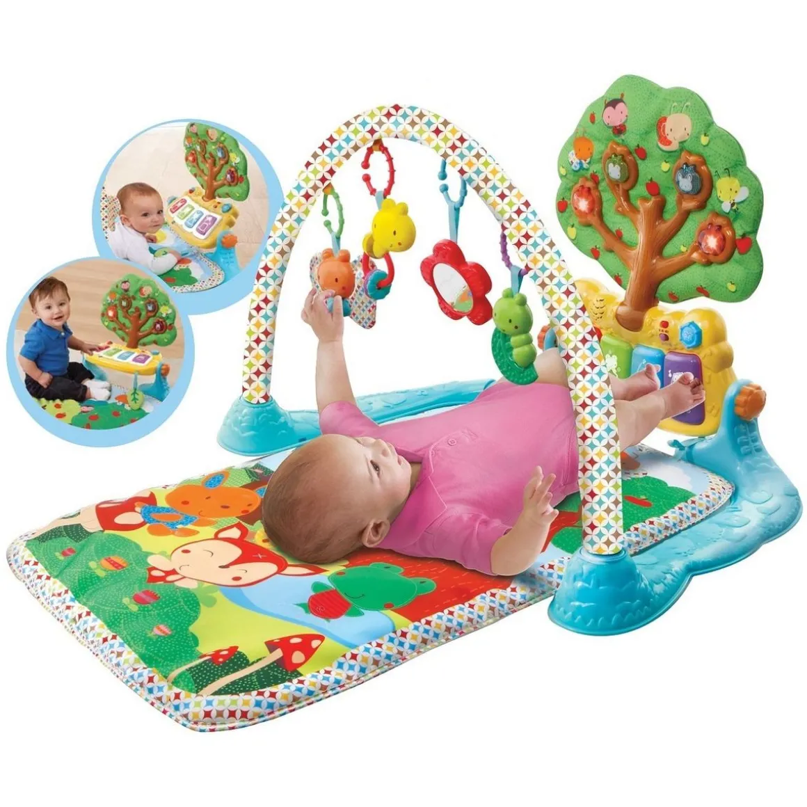 Avec le Jardin Enchante des P’tits Copains de VTECH bébé s’amuse comme un petit fou ! Son piano est interactif et détachable, il favorise l’éveil de bébé et lui permet de découvrir les couleurs, les formes, mais aussi les animaux. . Génial ! Les lumières de l’arbre s’illuminent au rythme des mélodies et stimulent Bébé. Le jardin enchanté possède également un bouton tambour et deux petits hochets à tirer. Contient 20 mélodies et 6 chansons qui sauront divertir bébé.