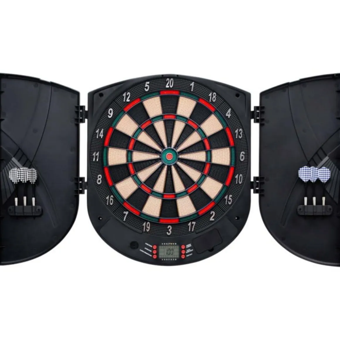 Le jeu de fléchettes électrique offre beaucoup de plaisir à jouer aux fléchettes à la maison. Que vous soyez jeune ou vieux, débutant ou professionnel, cet appareil est destiné à satisfaire tous les fans de fléchettes. Matériau durable : le jeu de fléchettes électronique est fabriqué en polypropylène, qui a une forte résilience et une prise ferme. Ainsi, le jeu de fléchettes est durable et de service de longue durée.Expériences de jeu multiples : avec 26 jeux et 185 options, cette machine à fléchettes offre à plusieurs joueurs différentes options de fléchettes, qui conviennent aux enfants et aux adultes ayant des difficultés différentes.Écran LCD : grâce à l’écran LCD et au système de notation automatique, les problèmes de notation manuelle sont éliminés, de sorte que vous pouvez profiter de jouer avec cette plaque de fléchettes et vous amuser davantage.Protection supplémentaire : afin de mieux prolonger la durée de vie du jeu de fléchettes, ce jeu de fléchettes avec écran LCD est conçu avec deux portes latérales pour augmenter la zone environnante. De plus, deux côtés peuvent être utilisés pour ranger les fléchettes.