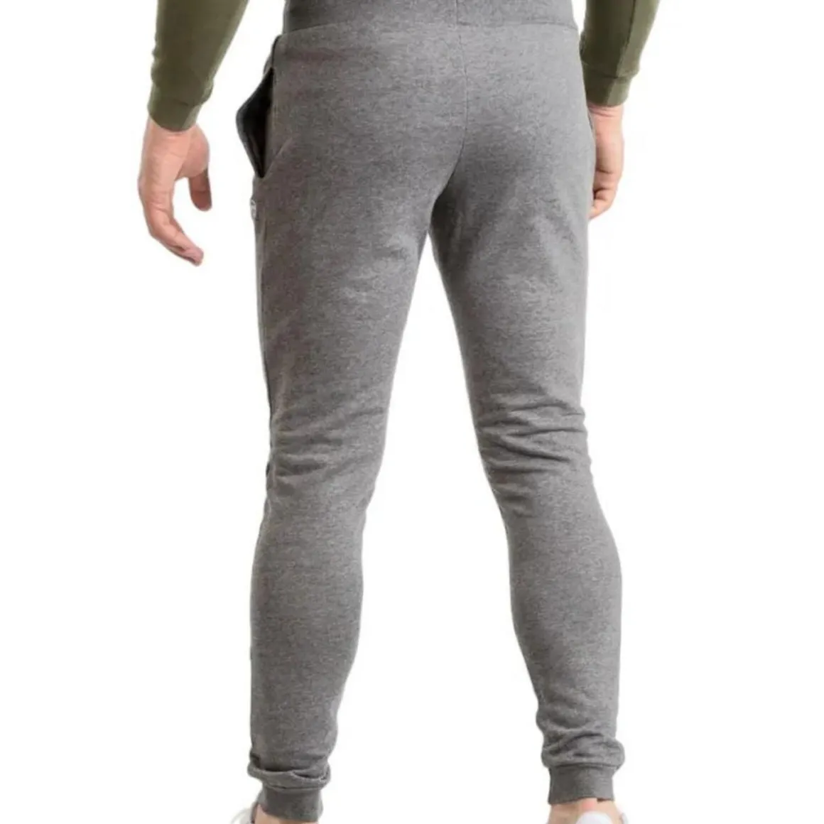 Optez pour le jogging Homme polaire de la marque Sergio Tacchini ! Matière : matière molletonnée Coloris : Gris Coupe : coupe regular altique Taille élastique et chevilles côtelées Écusson imprimé sur la jambe Composition 60% Cotton, 40% Polyester