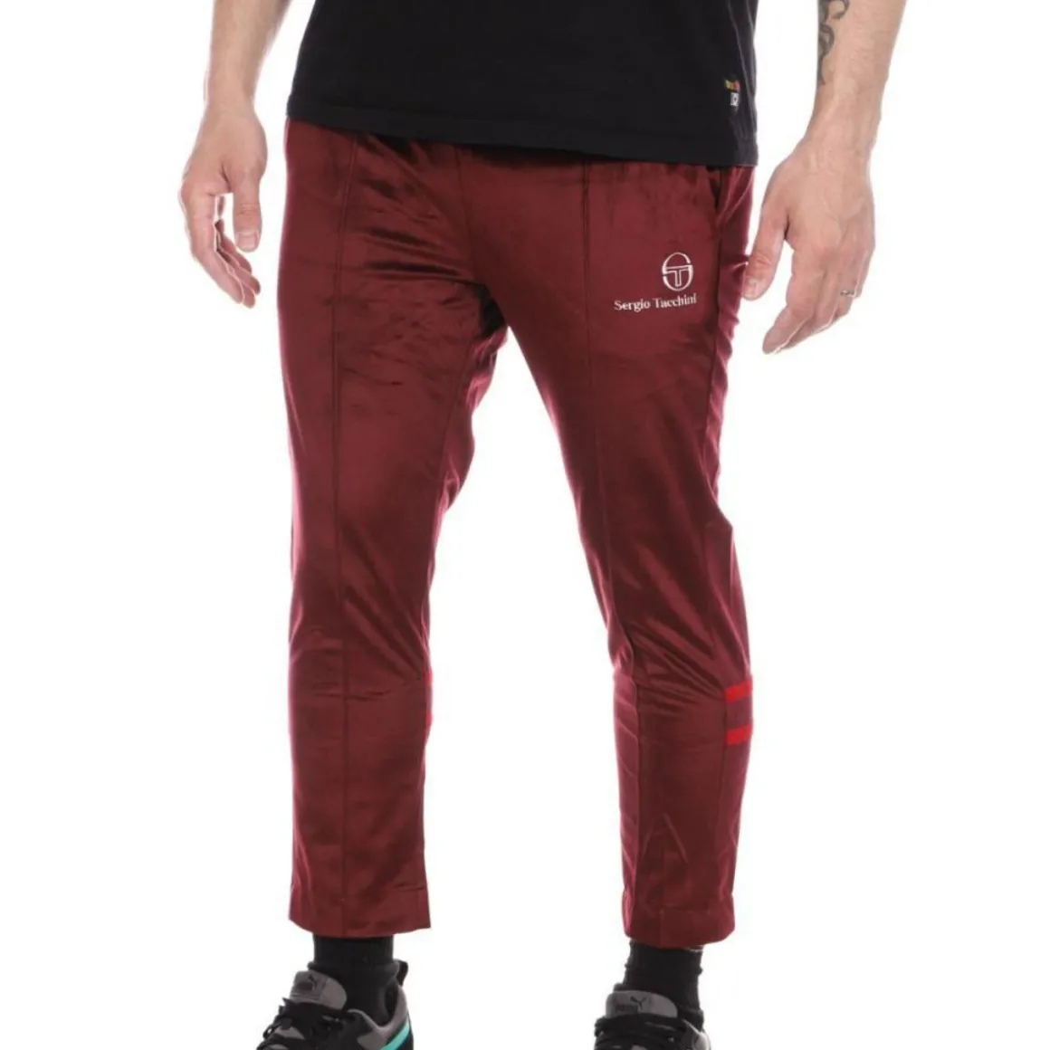 Jogging pour homme de la marque Sergio Tacchini ! Couleur : Bordeaux Coupe altique Matière peau de pêche Ceinture élastique Cordons de serrage Logo Sergio brodé Composition : 100% polyester