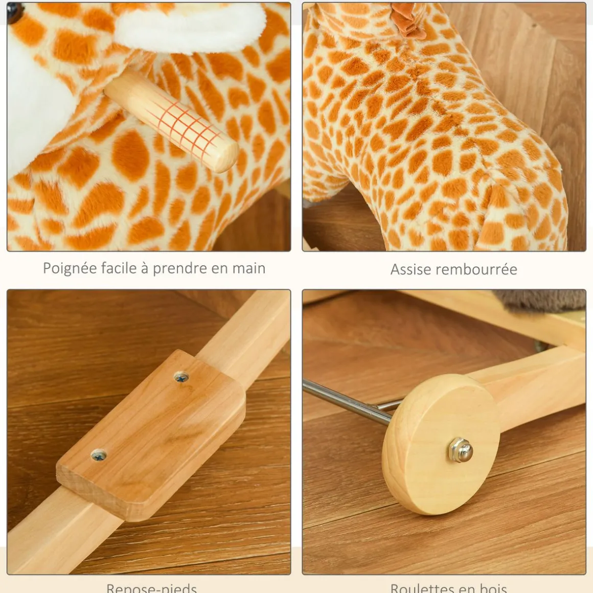 – Jouet à bascule girafe grand réalisme : pelage tacheté, cou orné d’une crinière, tête avec cornillons, modèle qui ravira à coup sûr votre enfant