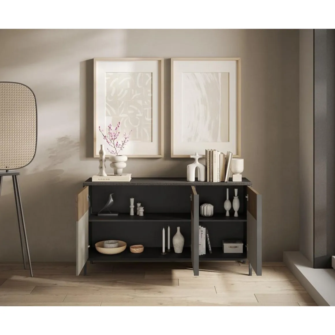 Le buffet bas Jules de 156 cm allie fonctionnalité et style contemporain. Doté de trois portes, il offre de nombreux rangements pour organiser votre vaisselle, linge de maison ou autres objets du quotidien. Son design épuré et moderne s’intègre parfaitement dans une salle à manger ou un salon, apportant une touche d’élégance. Disponible en deux coloris tendance, il s’adapte facilement à votre intérieur et à vos préférences.