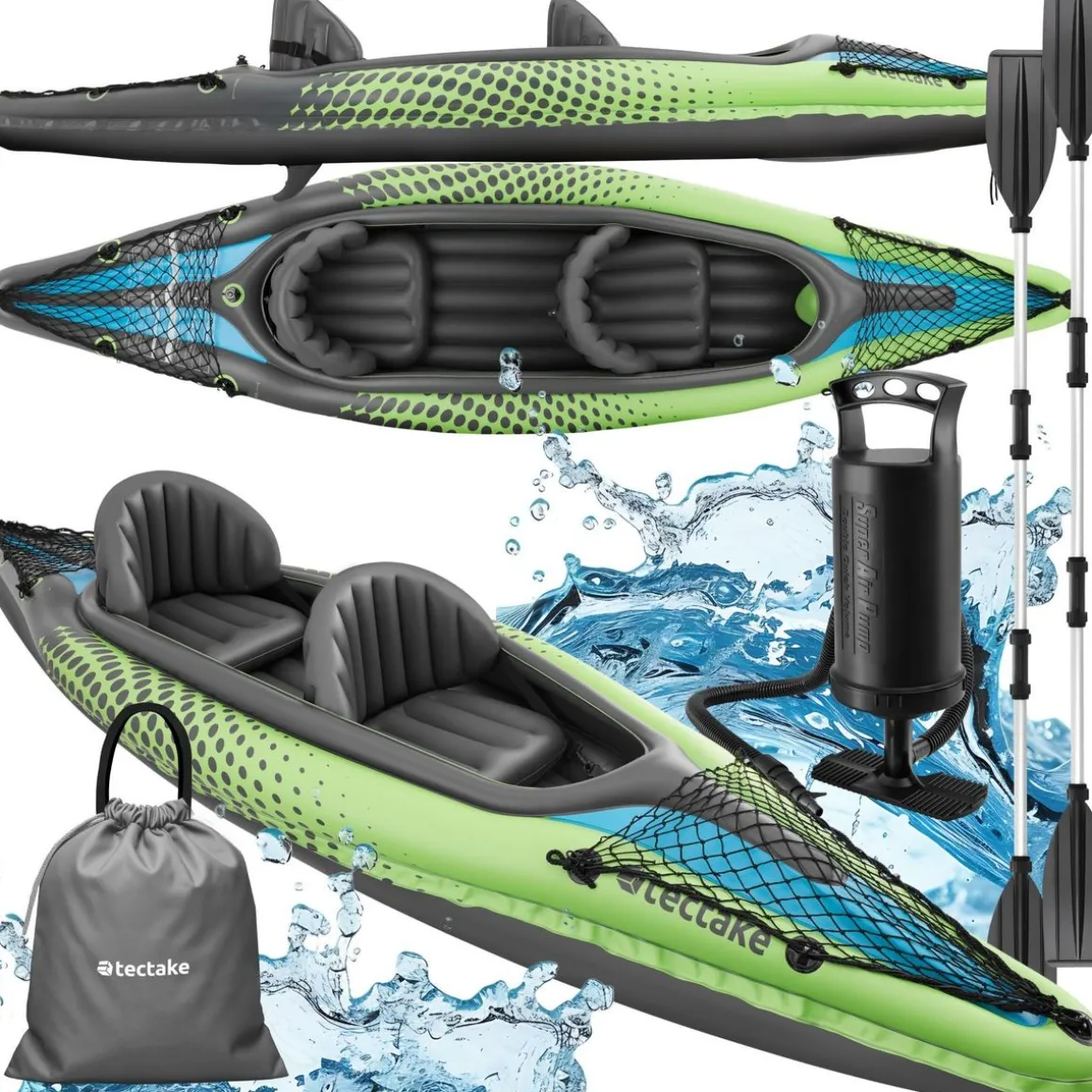 Le kayak gonflable biplace Liberty de tectake vous offre la combinaison parfaite entre stabilité, robustesse et confort : idéal pour des excursions inoubliables sur les lacs ou les rivières.