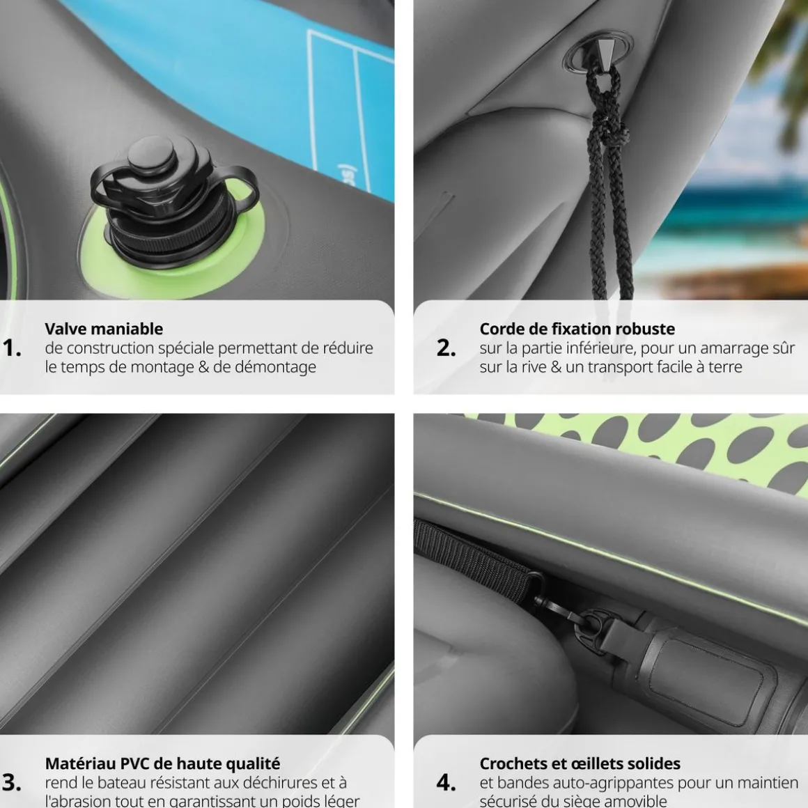 - Kayak gonflable en matériau PVC extrêmement robuste pour 2 personnes