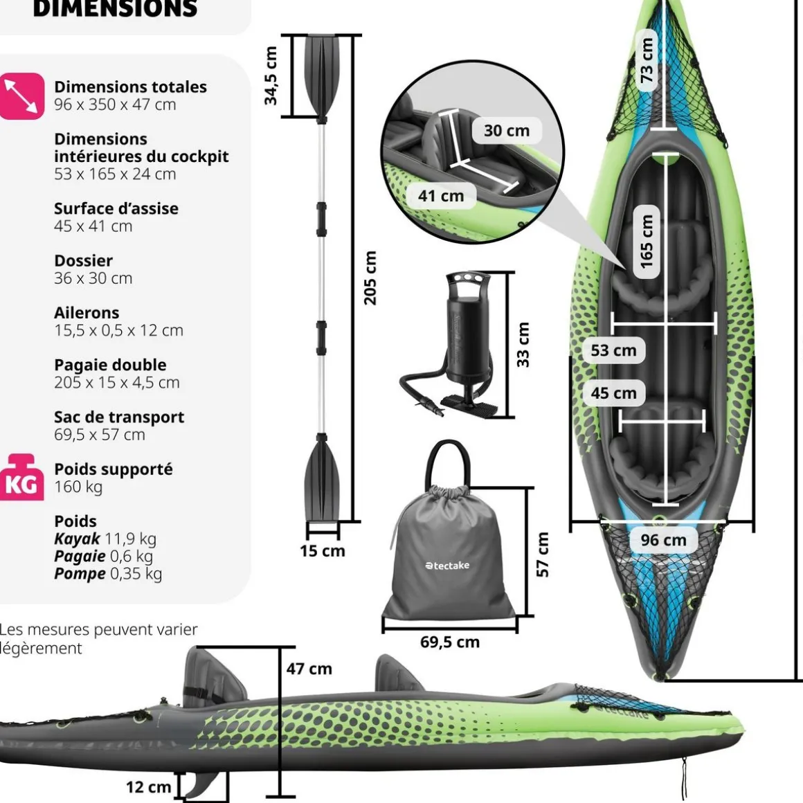 - Poids du kayak : env. 11,9 kg
