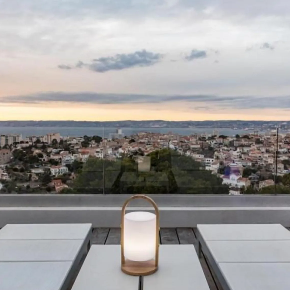 Lanterne LED Woody – LUMISKY – Blanc – Design scandinave – Poignée en bois naturel – Autonomie 10h